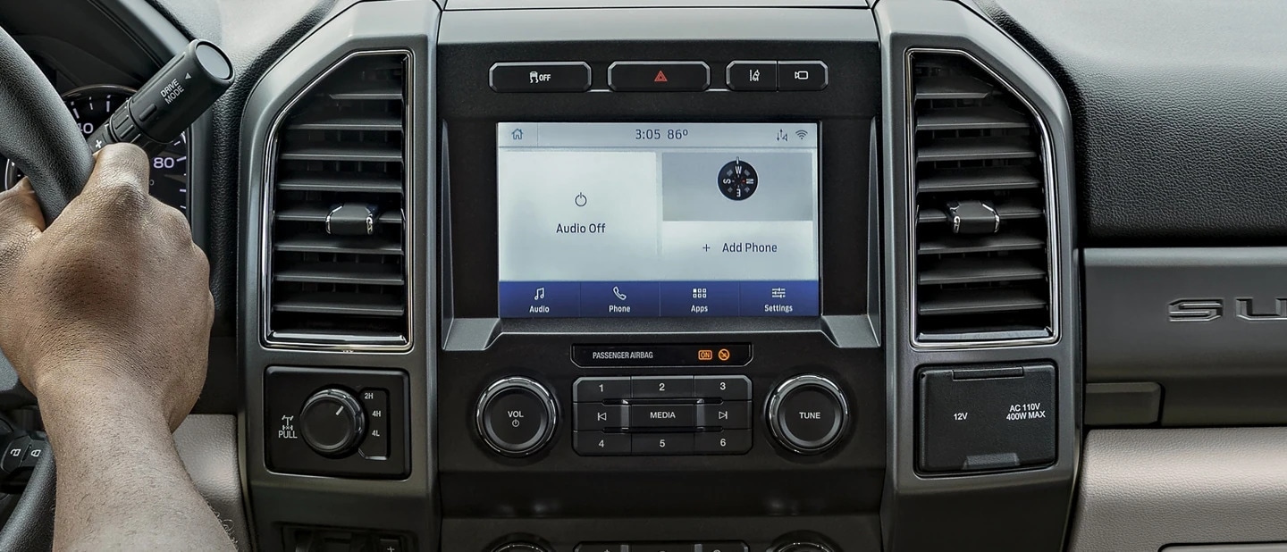 Super Duty® now offers three different forms of SYNC, our easy-to-use, responsive voice-activated technology. SYNC is standard on XL models, SYNC®  3 is standard on XLT models, while Super Duty LARIAT, King Ranch® , Platinum and Limited models now feature an all-new 12-inch screen with SYNC®  4. Discover the system's quick reactions to your conversational voice commands. Experience the smartphone-like touchscreen with impressive responsiveness on SYNC®   3 and 4. You'll also find a sleek user-friendly interface to help you connect to and control your smartphone.