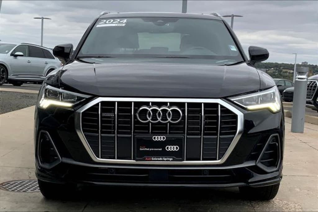 Mythos Black Metallic 2024 Audi Q3 Premium S Line quattro quattro 8-Speed Automatic with Tiptronic 2.0L 4-Cylinder TFSI 19" Wheel Package, Alarm w/Motion Sensor, Audi Advanced Key, Audi Beam-Rings, Auto-Dimming Power-Folding Exterior Mirrors, Auto-Dimming Rear-View Mirror, Brown Gray Natural Wood Inlay, Convenience Package, Driver Seat Memory, Garage Door Opener (HomeLink), LED Interior Lighting Package, SiriusXM, Wheels: 19" 5-Double-Spoke Dynamic Design, Wireless Phone Charging Pad.