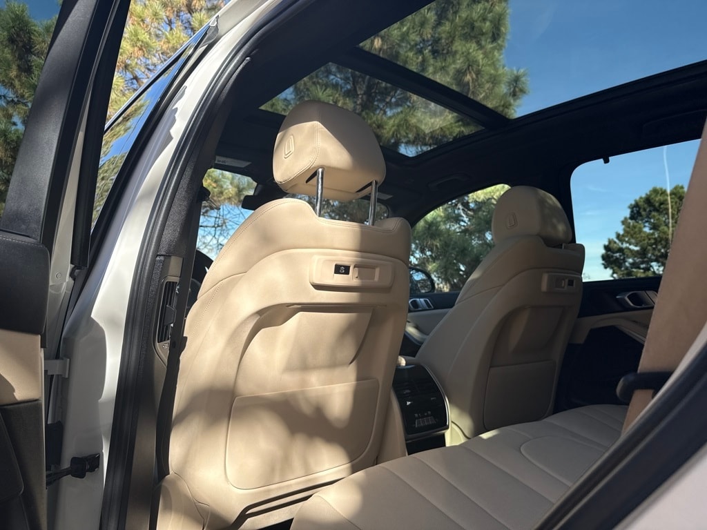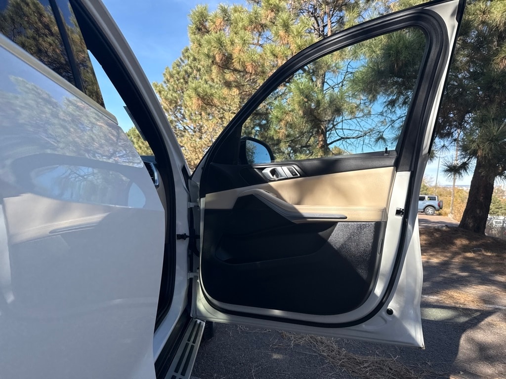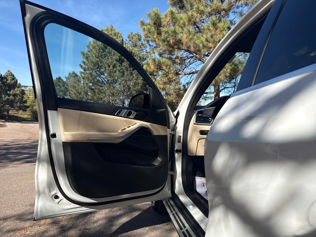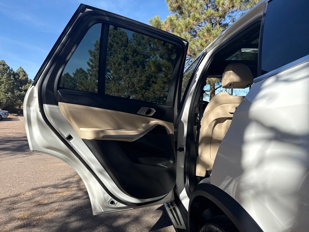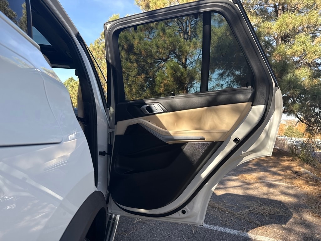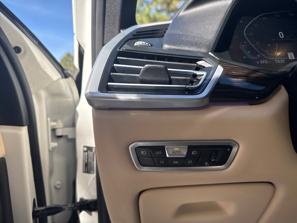 Convenience Package (4-Zone Automatic Climate Control, Enhanced USB & Bluetooth, SiriusXM Satellite Radio w/1 Year All Access, WiFi Hotspot, and Wireless Charging), BMW Certified, Canberra Beige/Black Artificial Leather, 10 Speakers, 3.39 Axle Ratio, 4-Wheel Disc Brakes, ABS brakes, Air Conditioning, Alloy wheels, Aluminum Running Boards, AM/FM radio, AM/FM Stereo, Apple CarPlay Compatibility, Auto High-beam Headlights, Auto tilt-away steering wheel, Auto-dimming door mirrors, Auto-dimming Rear-View mirror, Automatic temperature control, Brake assist, Bumpers: body-color, Compass, Delay-off headlights, Driver door bin, Driver vanity mirror, Dual front impact airbags, Dual front side impact airbags, Electronic Stability Control, Emergency communication system: BMW Assist eCall, Exterior Parking Camera Rear, Four wheel independent suspension, Front anti-roll bar, Front Bucket Seats, Front Center Armrest, Front dual zone A/C, Front fog lights, Front reading lights, Fully automatic headlights, Garage door transmitter, Genuine wood console insert, Genuine wood dashboard insert, Genuine wood door panel insert, Head restraints memory, Heated door mirrors, Heated Front Seats, Heated front seats, Heated Front Seats w/Armrests & Steering Wheel, Hi-Fi Sound System, Illuminated entry, Knee airbag, Leather Shift Knob, Leather steering wheel, Low tire pressure warning, Lumbar Support, Memory seat, Navigation System, Occupant sensing airbag, Outside temperature display, Overhead airbag, Panic alarm, Passenger door bin, Passenger vanity mirror, Power adjustable front head restraints, Power door mirrors, Power driver seat, Power Front Seats, Power moonroof, Power passenger seat, Power steering, Power windows, Radio data system, Rain sensing wipers, Rear air conditioning, Rear anti-roll bar, Rear Manual Side Window Shades, Rear reading lights, Rear seat center armrest, Rear window defroster, Rear window wiper, Rear-View Camera, Remote Engine Start, Remote keyless entry, Roof rack: rails only, Security system, SensaTec Upholstery, Speed control, Speed-sensing steering, Speed-Sensitive Wipers, Split folding rear seat, Spoiler, Sport Seats, Sport steering wheel, Steering wheel memory, Steering wheel mounted audio controls, Tachometer, Telescoping steering wheel, Tilt steering wheel, Traction control, Trip computer, Turn signal indicator mirrors, Variably intermittent wipers, Wheels: 19" x 9" V-Spoke (Style 734), and Wheels: 20" x 9" V-Spoke (Style 738)