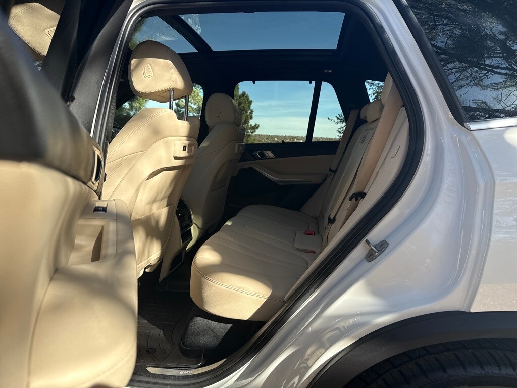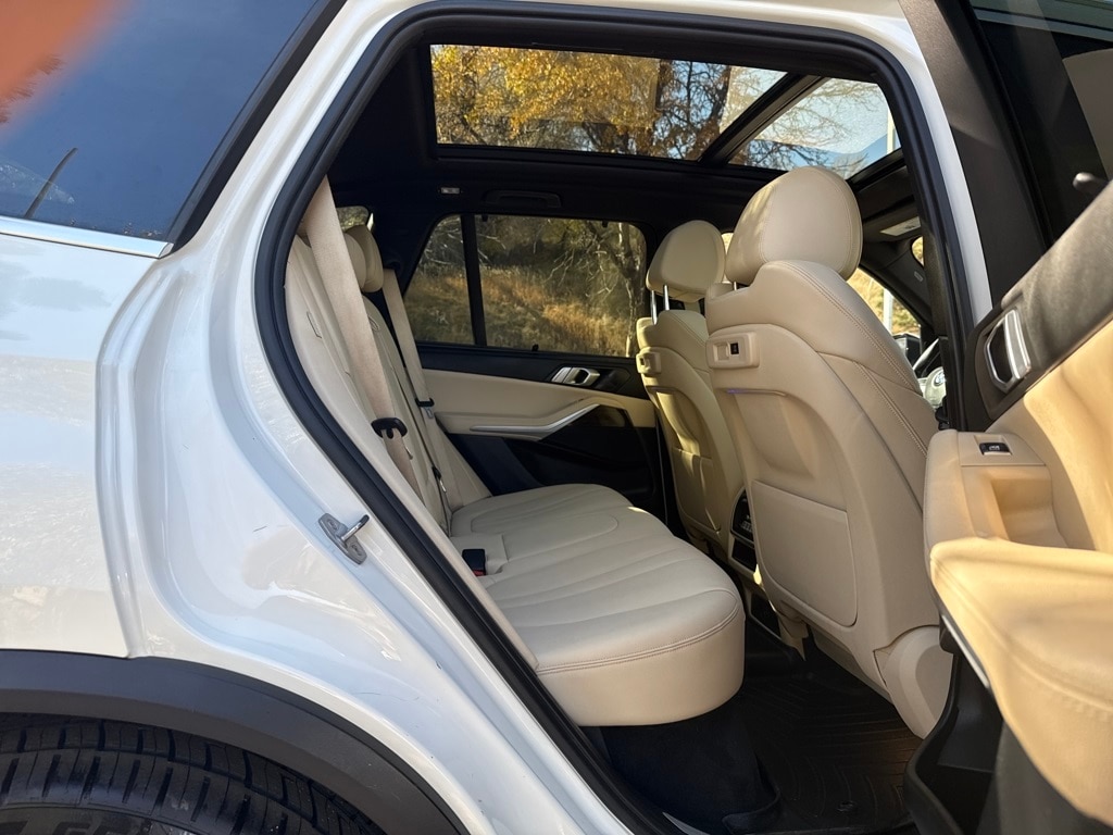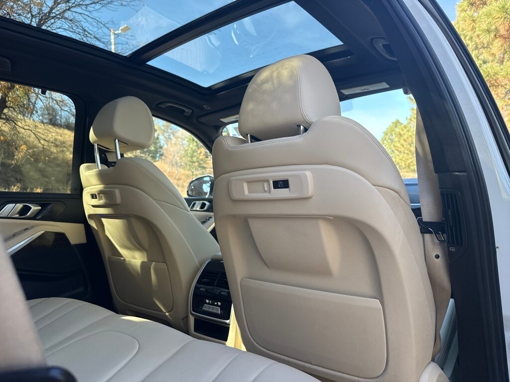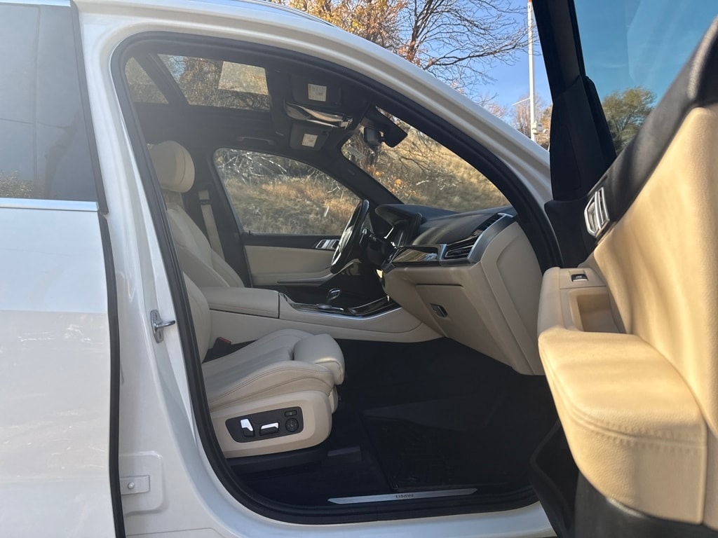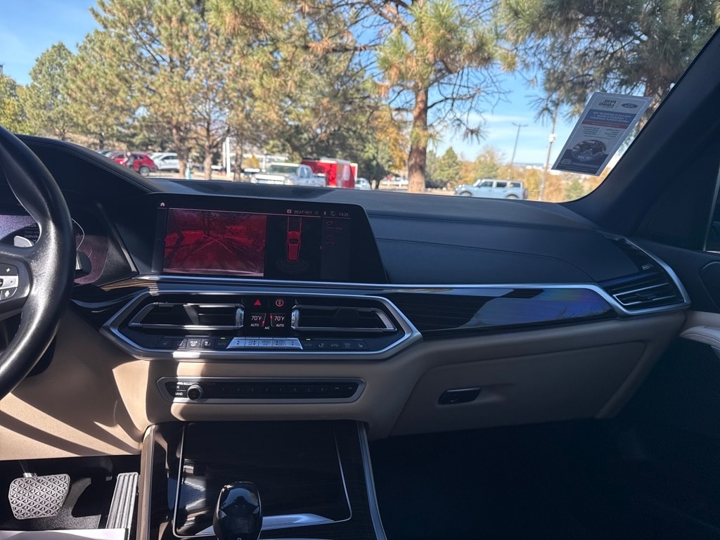 Convenience Package (4-Zone Automatic Climate Control, Enhanced USB & Bluetooth, SiriusXM Satellite Radio w/1 Year All Access, WiFi Hotspot, and Wireless Charging), BMW Certified, Canberra Beige/Black Artificial Leather, 10 Speakers, 3.39 Axle Ratio, 4-Wheel Disc Brakes, ABS brakes, Air Conditioning, Alloy wheels, Aluminum Running Boards, AM/FM radio, AM/FM Stereo, Apple CarPlay Compatibility, Auto High-beam Headlights, Auto tilt-away steering wheel, Auto-dimming door mirrors, Auto-dimming Rear-View mirror, Automatic temperature control, Brake assist, Bumpers: body-color, Compass, Delay-off headlights, Driver door bin, Driver vanity mirror, Dual front impact airbags, Dual front side impact airbags, Electronic Stability Control, Emergency communication system: BMW Assist eCall, Exterior Parking Camera Rear, Four wheel independent suspension, Front anti-roll bar, Front Bucket Seats, Front Center Armrest, Front dual zone A/C, Front fog lights, Front reading lights, Fully automatic headlights, Garage door transmitter, Genuine wood console insert, Genuine wood dashboard insert, Genuine wood door panel insert, Head restraints memory, Heated door mirrors, Heated Front Seats, Heated front seats, Heated Front Seats w/Armrests & Steering Wheel, Hi-Fi Sound System, Illuminated entry, Knee airbag, Leather Shift Knob, Leather steering wheel, Low tire pressure warning, Lumbar Support, Memory seat, Navigation System, Occupant sensing airbag, Outside temperature display, Overhead airbag, Panic alarm, Passenger door bin, Passenger vanity mirror, Power adjustable front head restraints, Power door mirrors, Power driver seat, Power Front Seats, Power moonroof, Power passenger seat, Power steering, Power windows, Radio data system, Rain sensing wipers, Rear air conditioning, Rear anti-roll bar, Rear Manual Side Window Shades, Rear reading lights, Rear seat center armrest, Rear window defroster, Rear window wiper, Rear-View Camera, Remote Engine Start, Remote keyless entry, Roof rack: rails only, Security system, SensaTec Upholstery, Speed control, Speed-sensing steering, Speed-Sensitive Wipers, Split folding rear seat, Spoiler, Sport Seats, Sport steering wheel, Steering wheel memory, Steering wheel mounted audio controls, Tachometer, Telescoping steering wheel, Tilt steering wheel, Traction control, Trip computer, Turn signal indicator mirrors, Variably intermittent wipers, Wheels: 19" x 9" V-Spoke (Style 734), and Wheels: 20" x 9" V-Spoke (Style 738)