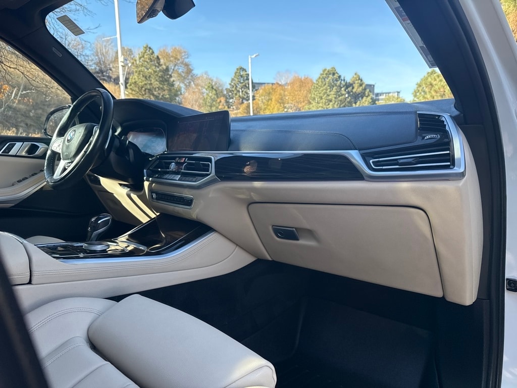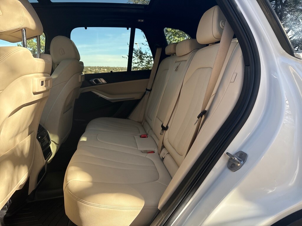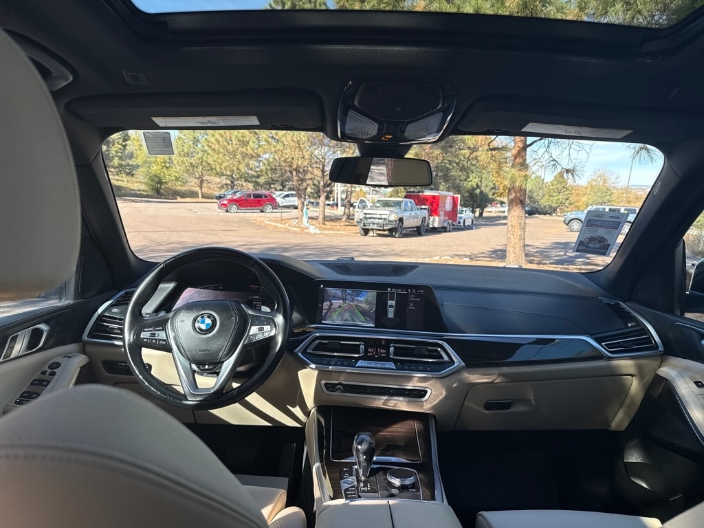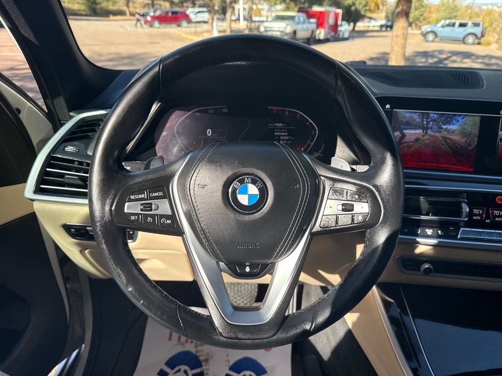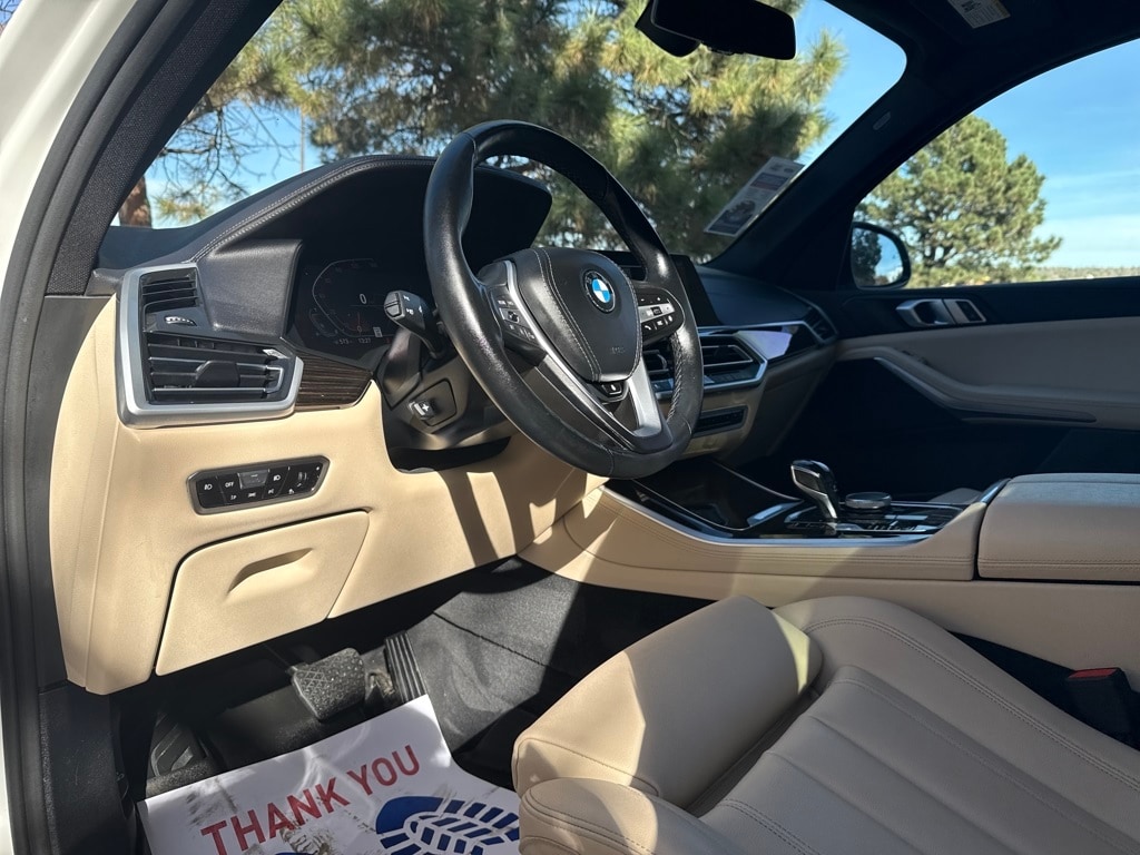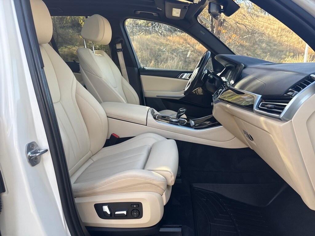 Convenience Package (4-Zone Automatic Climate Control, Enhanced USB & Bluetooth, SiriusXM Satellite Radio w/1 Year All Access, WiFi Hotspot, and Wireless Charging), BMW Certified, Canberra Beige/Black Artificial Leather, 10 Speakers, 3.39 Axle Ratio, 4-Wheel Disc Brakes, ABS brakes, Air Conditioning, Alloy wheels, Aluminum Running Boards, AM/FM radio, AM/FM Stereo, Apple CarPlay Compatibility, Auto High-beam Headlights, Auto tilt-away steering wheel, Auto-dimming door mirrors, Auto-dimming Rear-View mirror, Automatic temperature control, Brake assist, Bumpers: body-color, Compass, Delay-off headlights, Driver door bin, Driver vanity mirror, Dual front impact airbags, Dual front side impact airbags, Electronic Stability Control, Emergency communication system: BMW Assist eCall, Exterior Parking Camera Rear, Four wheel independent suspension, Front anti-roll bar, Front Bucket Seats, Front Center Armrest, Front dual zone A/C, Front fog lights, Front reading lights, Fully automatic headlights, Garage door transmitter, Genuine wood console insert, Genuine wood dashboard insert, Genuine wood door panel insert, Head restraints memory, Heated door mirrors, Heated Front Seats, Heated front seats, Heated Front Seats w/Armrests & Steering Wheel, Hi-Fi Sound System, Illuminated entry, Knee airbag, Leather Shift Knob, Leather steering wheel, Low tire pressure warning, Lumbar Support, Memory seat, Navigation System, Occupant sensing airbag, Outside temperature display, Overhead airbag, Panic alarm, Passenger door bin, Passenger vanity mirror, Power adjustable front head restraints, Power door mirrors, Power driver seat, Power Front Seats, Power moonroof, Power passenger seat, Power steering, Power windows, Radio data system, Rain sensing wipers, Rear air conditioning, Rear anti-roll bar, Rear Manual Side Window Shades, Rear reading lights, Rear seat center armrest, Rear window defroster, Rear window wiper, Rear-View Camera, Remote Engine Start, Remote keyless entry, Roof rack: rails only, Security system, SensaTec Upholstery, Speed control, Speed-sensing steering, Speed-Sensitive Wipers, Split folding rear seat, Spoiler, Sport Seats, Sport steering wheel, Steering wheel memory, Steering wheel mounted audio controls, Tachometer, Telescoping steering wheel, Tilt steering wheel, Traction control, Trip computer, Turn signal indicator mirrors, Variably intermittent wipers, Wheels: 19" x 9" V-Spoke (Style 734), and Wheels: 20" x 9" V-Spoke (Style 738)