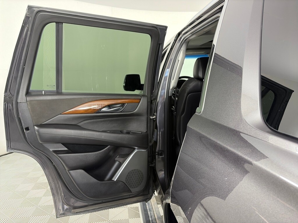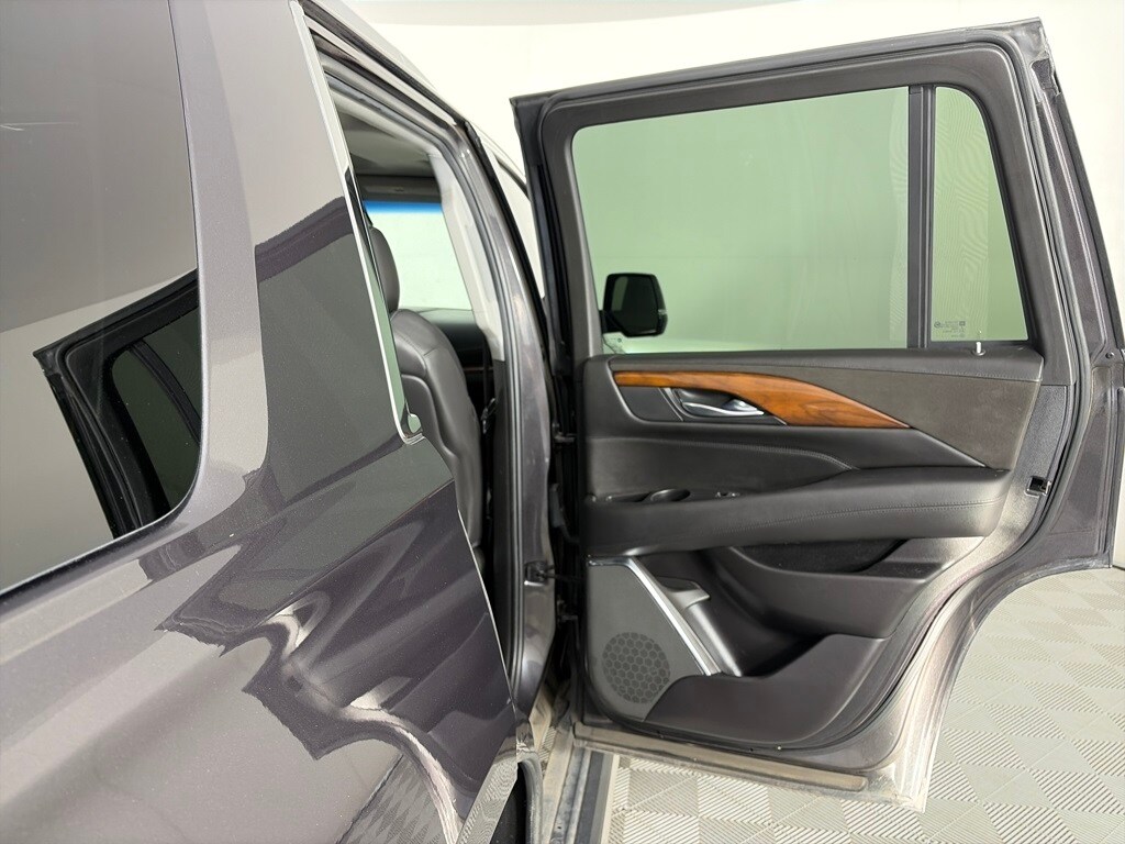 ASSIST STEPS, POWER-RETRACTABLE, RUNNING SIDE BOARD with LED lighting, CADILLAC USER EXPERIENCE WITH EMBEDDED NAVIGATION AM/FM stereo with 8 diagonal color information display featuring touch response, haptic feedback, gesture recognition, Natural Voice Recognition, Phone Integration for Apple CarPlay® and Android Auto® capability for compatible phone, Collection and Teen Driver. Five USB ports, including one in the articulating storage door/bin and auxiliary audio port (STD), ENGINE, 6.2L V8 WITH ACTIVE FUEL MANAGEMENT Spark Ignition Direct Injection (SIDI) and Variable Valve Timing (VVT), includes aluminum block construction (420 hp [313.2 kW] @ 5600 rpm, 460 lb-ft of torque [621 N-m] @ 4100 rpm) (STD), TRANSMISSION, 10-SPEED AUTOMATIC electronically controlled with overdrive, tow/haul mode and tap up/tap down shifting (STD). Cadillac Premium Luxury with DARK GRANITE METALLIC exterior and JET BLACK interior features a 8 Cylinder Engine with 420 HP at 5600 RPM*.
