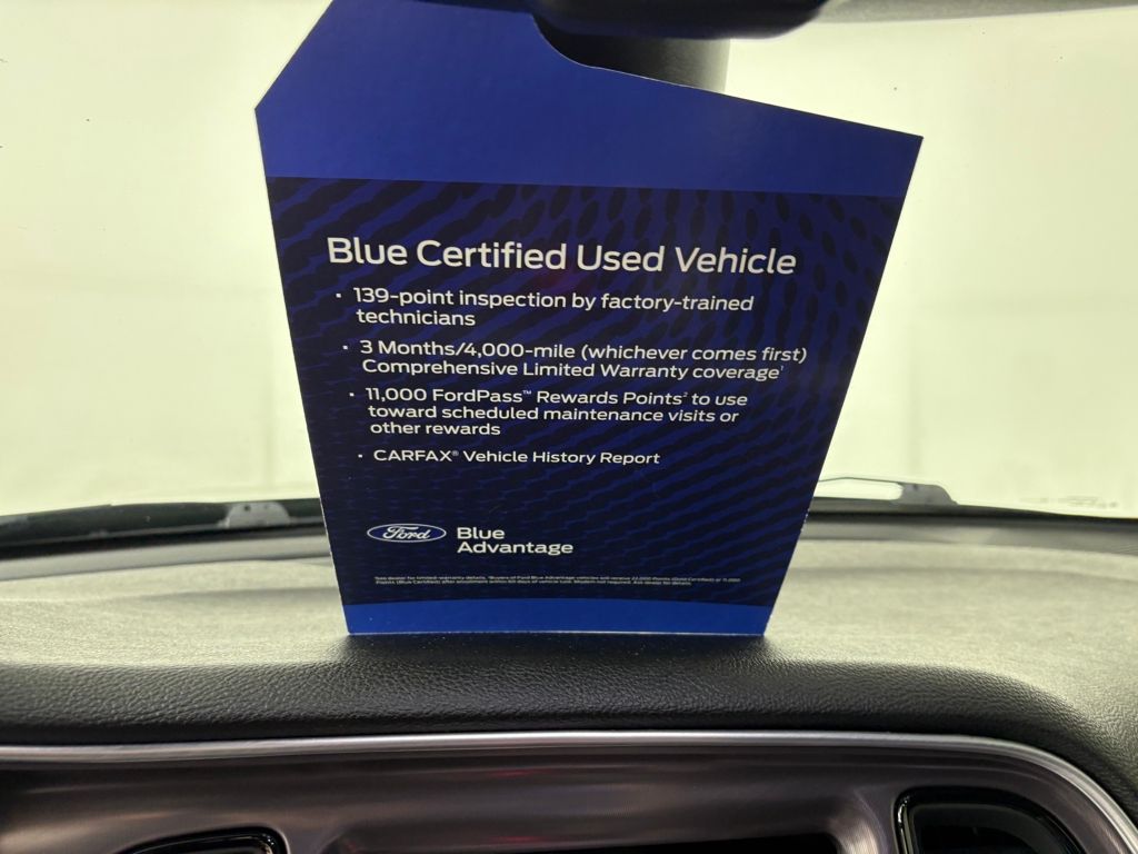Ford Blue Certified includes:139 point vehicle inspection performed by an ASE Certified technician 3-month/4,000-mile Comprehensive Limited Warranty coverage that is fully competitive with other online retailers Blue Certification includes 11,000 FordPass Rewards Points For other manufacturers not listed above, Comprehensive Coverage is provided for 3 months or 4,000 miles, whichever comes first, from the signature date of the Ford Blue Advantage â" Blue Certified purchase. Comprehensive Limited Warranty covering 1,000+ components Trave