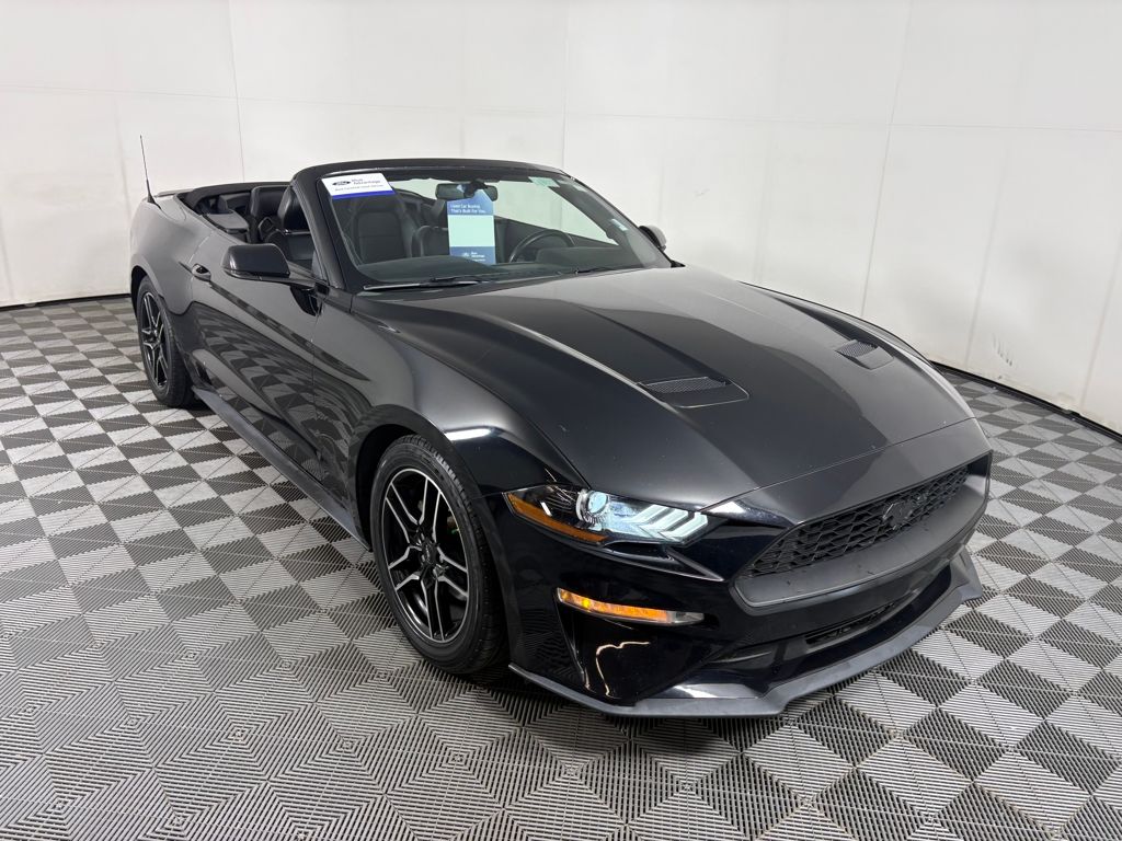 The **Power convertible roof** is another standout feature, allowing drivers to enjoy an open-air experience at the touch of a button. This feature enhances the Mustangâs sporty appeal and offers versatility for changing weather conditions. The **Touchscreen** interface is user-friendly, providing access to various features and information with just a touch, making it an essential component of the modern driving experience.