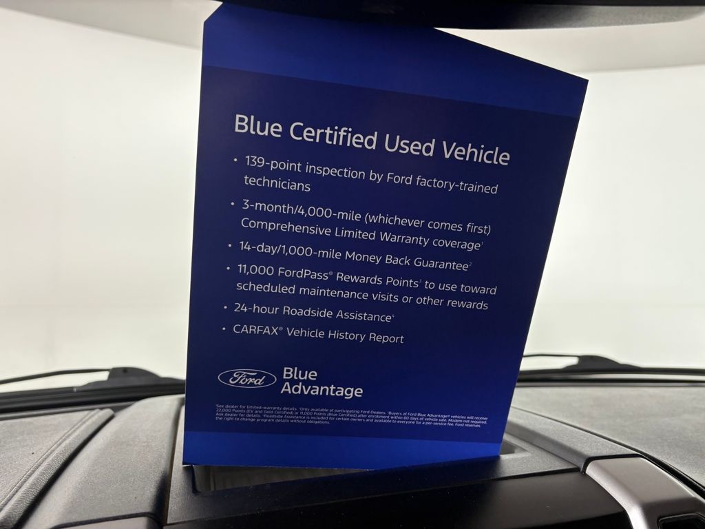 Ford Blue Certified includes:139 point vehicle inspection performed by an ASE Certified technician 3-month/4,000-mile Comprehensive Limited Warranty coverage that is fully competitive with other online retailers Blue Certification includes 11,000 FordPass Rewards Points For other manufacturers not listed above, Comprehensive Coverage is provided for 3 months or 4,000 miles, whichever comes first, from the signature date of the Ford Blue Advantage â" Blue Certified purchase. Comprehensive Limited Warranty covering 1,000+ components