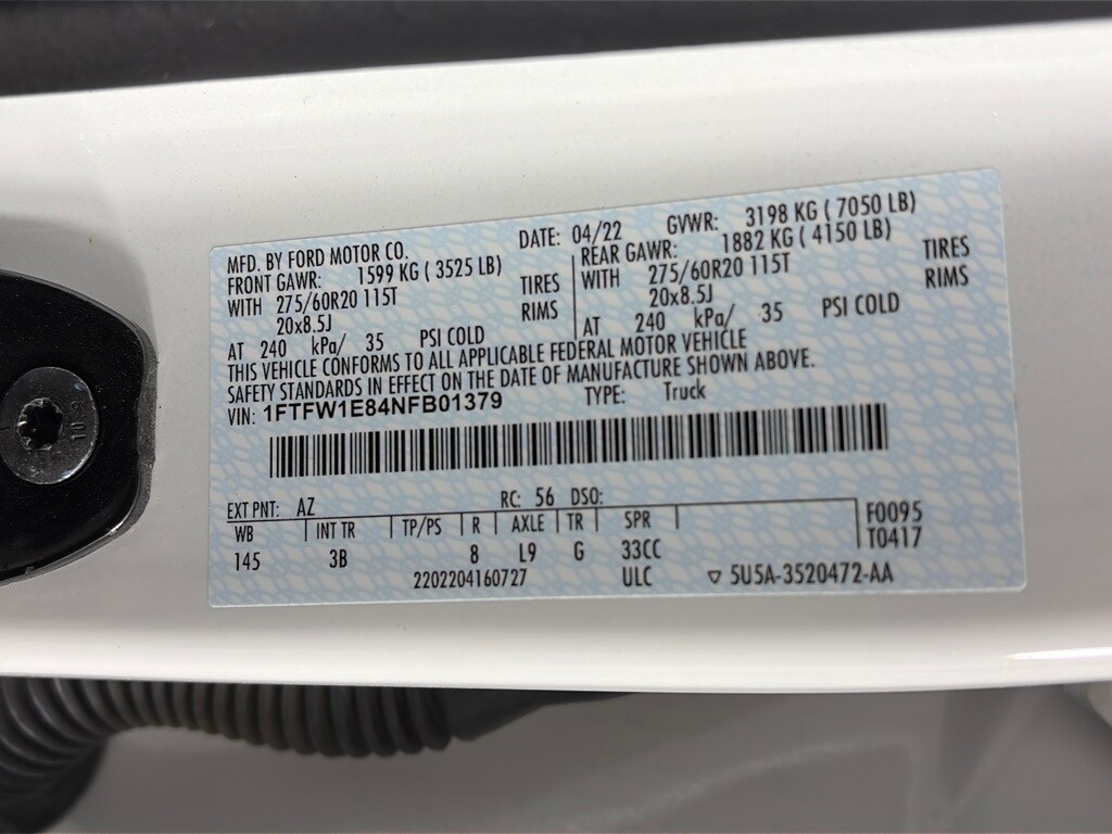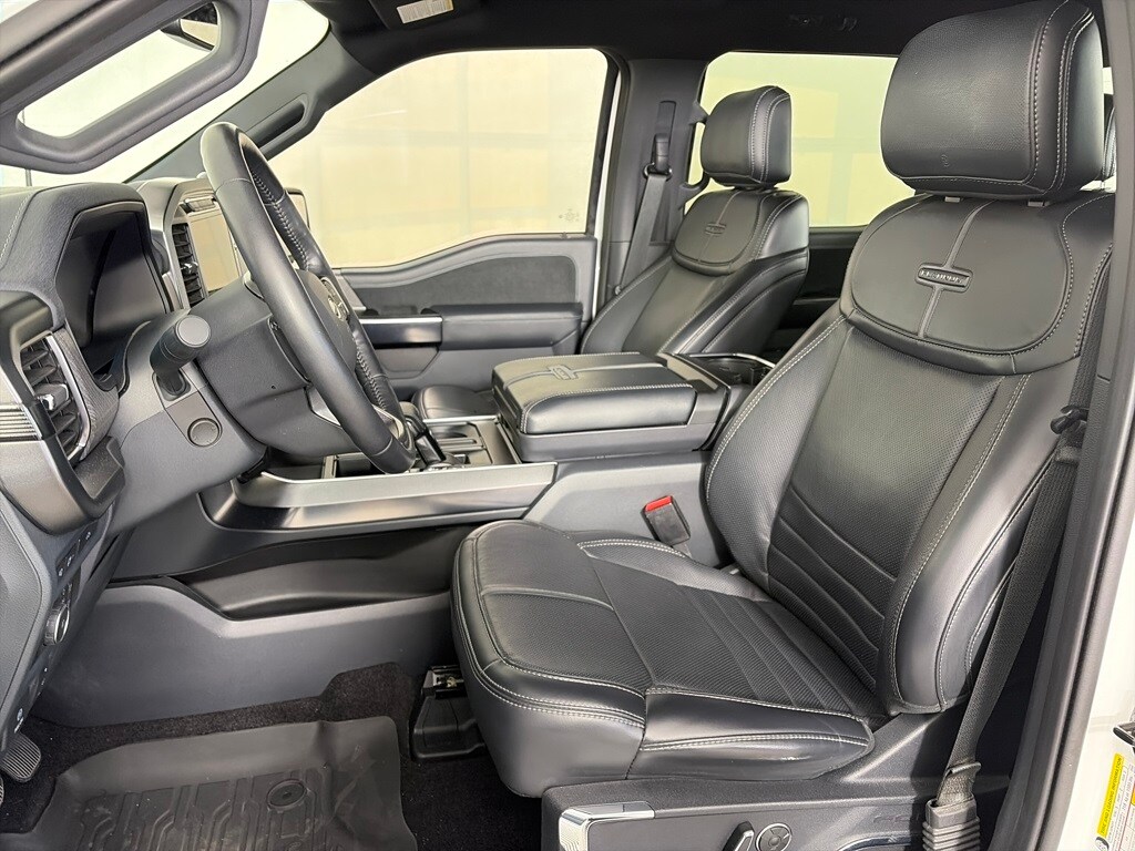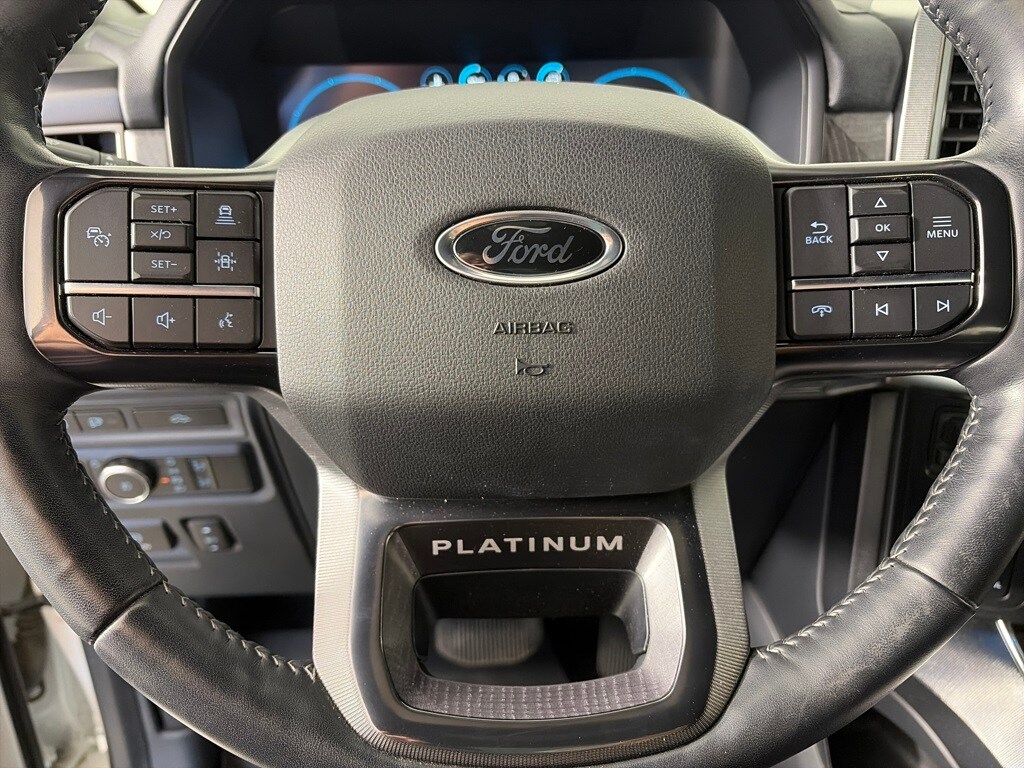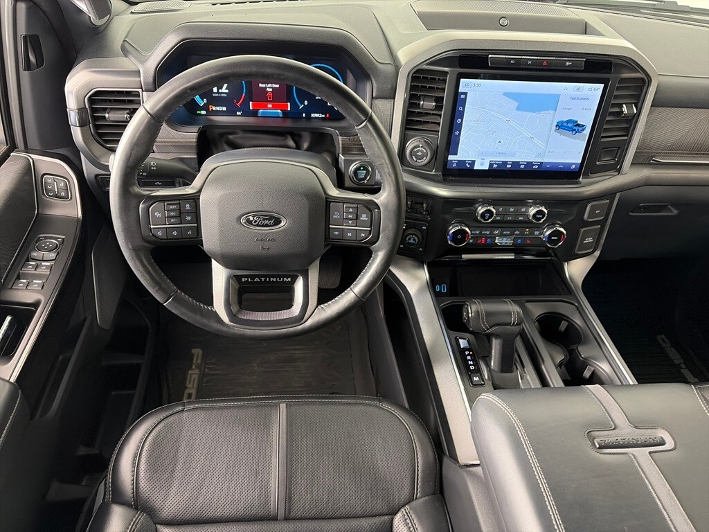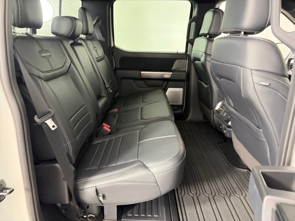 EQUIPMENT GROUP 701A HIGH Ford Co-Pilot360 Active 2.0, forward sensing system, BlueCruise, Active Park Assist 2.0, Radio: B&O Unleashed Sound System by Bang & Olufsen, HD Radio and 18 speakers including subwoofer, Bed Utility Package, BoxLink, 4 premium locking cleats, LED Box Lighting, Tailgate Step w/Tailgate Work Surface, Power Tailgate, Tow Technology Package, smart trailer tow connector and BLIS w/trailer tow coverage where BLIS is available, 360 Degree Camera, trailer reverse guidance, Pro Trailer Backup Assist, PLATINUM BLACK APPEARANCE Dark-Tinted Taillamps, Black Exterior Badging, Wheels: 20 Gloss Black Painted Aluminum, Black Belt Moldings, Unique Hood & Grille w/Black Accent, Black Front Tow Hooks, 2 two hooks, Body-Color Door Handles & Mirror Caps, Power-Deployable Running Boards w/Black Accent, Dark Interior Appliques, Black Tailgate Applique, Black Taillamp Bezels, ENGINE: 3.5L V6 ECOBOOST, CONTINUOUSLY CONTROLLED DAMPING, ELECTRONIC LOCKING W/3.55 AXLE RATIO, TRANSMISSION: ELECTRONIC 10-SPEED AUTOMATIC selectable drive modes: normal, ECO, sport, tow/haul, slippery, deep snow/sand and mud/rut (STD). Ford Platinum with Star White Metallic Tri-Coat exterior and Black interior features a V6 Cylinder Engine with 400 HP at 6000 RPM*.