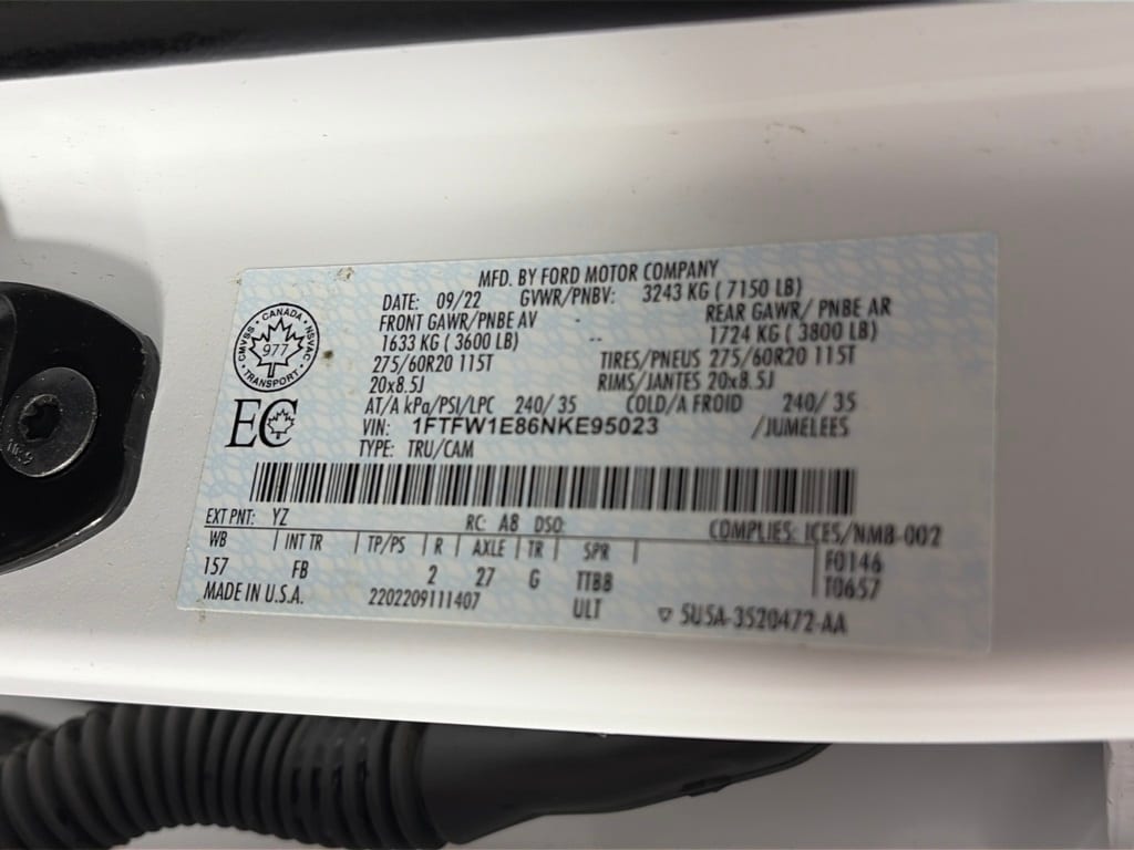 EQUIPMENT GROUP 302A HIGH Class IV Trailer Hitch Receiver, towing capability up to TBD lbs, on 3.3L V6 PFDI engine (99B) and 2.7L EcoBoost engine (99P) or up to TBD lbs, on 3.5L EcoBoost engine (998) and 5.0L V8 engine (995), 7/4-pin connector, class IV trailer hitch receiver, smart trailer tow connector ( BLIS w/trailer tow coverage where BLIS is available), XLT Chrome Appearance Package, lower grille trim, Chrome Single-Tip Exhaust, Tires: 275/65R18 BSW Automatic Transmission, Chrome Door & Tailgate Handles w/Body-Color Bezel, bezel on side doors and black on tailgate, Wheels: 18 Chrome-Like PVD, 2-Bar Style Grille w/Chrome 2 Minor Bars, silver painted surround and black background mesh, Bright Polished Step Bars, Zone Lighting, Leather-Wrapped Steering Wheel, Intelligent Access w/Push Button Start, ENGINE: 3.5L V6 ECOBOOST, XLT SPORT APPEARANCE PACKAGE body-color wheellip moldings and unique interior finish, Box Side Decals, Chrome Single-Tip Exhaust, Body-Color Door & Tailgate Handles, body-color bezel on side doors and black on tailgate, Tires: 275/65R18 BSW Automatic Transmission, Wheels: 18 6-Spoke Machined Aluminum, gloss black painted pockets, Accent-Color Step Bars, Body-Color Front & Rear Bumpers, body-color front fascia, Black 2-Bar Style Grille w/Black Surround/Accents, TRANSMISSION: ELECTRONIC 10-SPEED AUTOMATIC selectable drive modes: normal, ECO, sport, tow/haul, slippery, deep snow/sand and mud/rut (STD). Ford XLT with Oxford White exterior and Black interior features a V6 Cylinder Engine with 400 HP at 6000 RPM*.