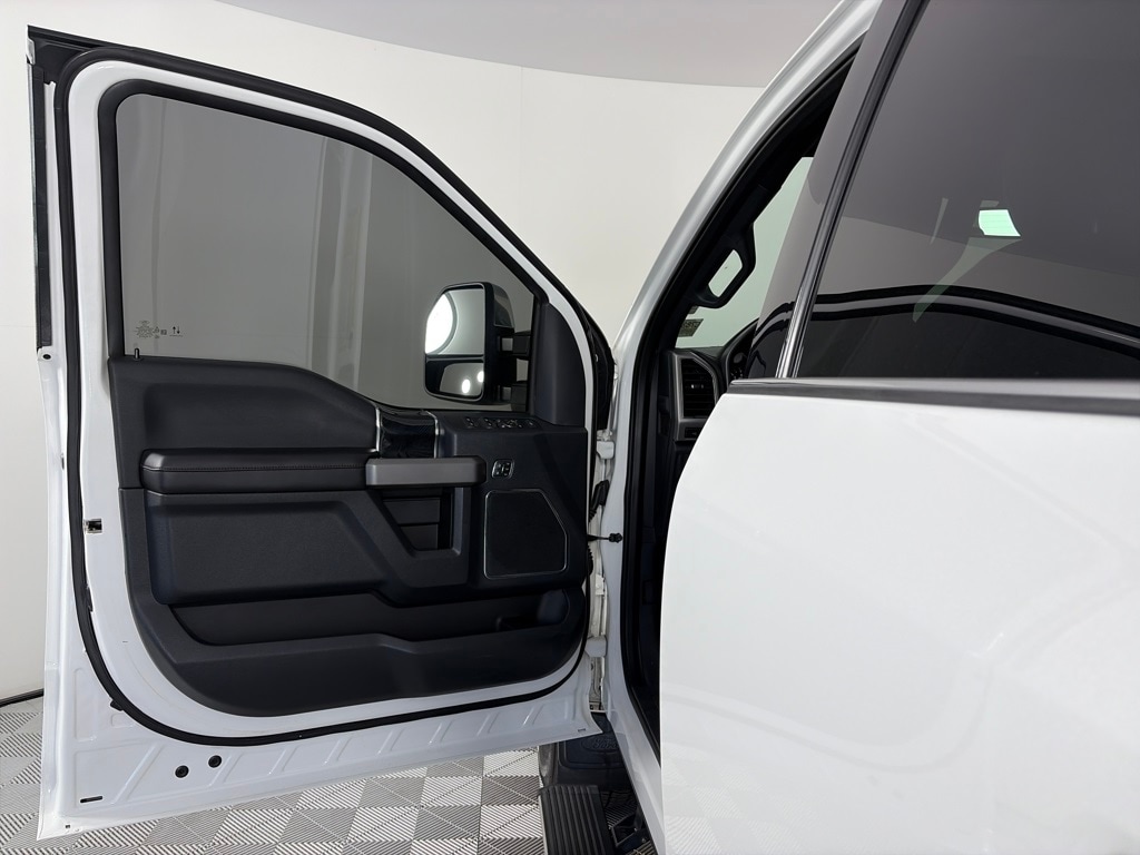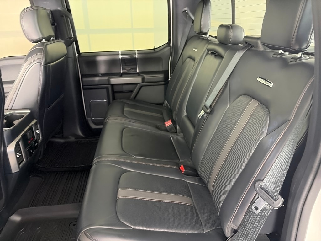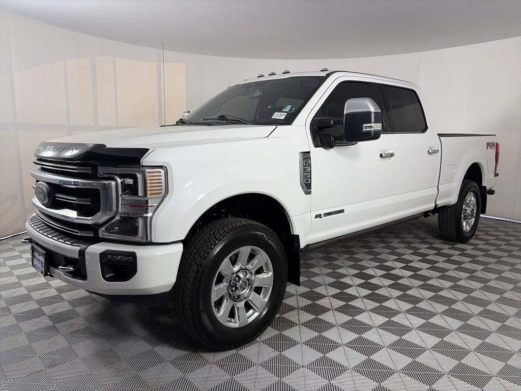 ENGINE: 6.7L 4V OHV POWER STROKE V8 TURBO DIESEL B20 manual push-button engine-exhaust braking and intelligent oil-life monitor, 240 Amp Alternator (67D), 34 Gallon Fuel Tank, GVWR: 11,500 lb Payload Package, 3.31 Axle Ratio, Dual 78-AH 750 CCA Batteries, TWIN PANEL POWER MOONROOF map lights and moonroof switches, ELECTRONIC-LOCKING W/3.55 AXLE RATIO, TRANSMISSION: TORQSHIFT 10-SPEED AUTOMATIC SelectShift and selectable drive modes: normal, tow/haul, eco, deep sand/snow and slippery (STD). Ford Platinum with Star White Metallic Tri-Coat exterior and Black interior features a 8 Cylinder Engine with 475 HP at 2600 RPM*.