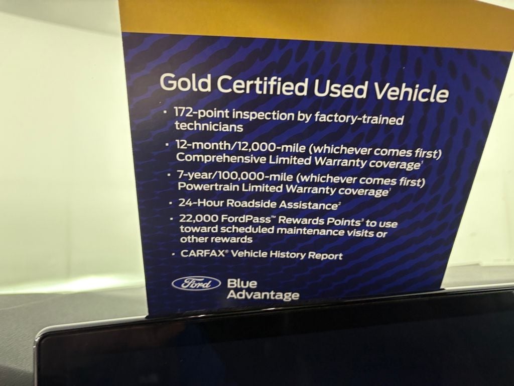 Enhanced by the Ford Gold Certified program, this vehicle undergoes a thorough 172-point inspection and offers a 12-month/12,000-mile limited warranty. The 7-year/100,000-mile powertrain warranty further ensures that you can drive confidently. With added perks like 24/7 roadside assistance and FordPass rewards points, peace of mind is just a drive away.