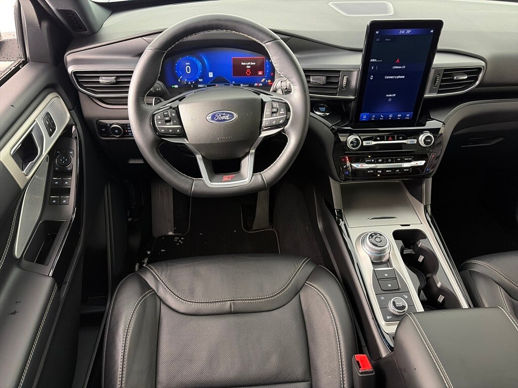 EQUIPMENT GROUP 401A ST High Package, ambient lighting, Memory Drivers Seat, Power Tilt/Telescoping Steering Column, Front Rain-Sensing Wipers, Reverse Brake Assist, 360-Degree Camera w/Split View, Wireless Charging Pad, 110V/150W AC Power Outlet, Replaces the powerpoint port on the rear side of the center floor console, Radio: B&O Sound System by Bang & Olufsen, 12 speakers, subwoofer and HD Radio, Sideview Mirrors w/Gloss Black Caps, power-folding w/Autofold, power and heated glass, LED turn signal indicators, ST projection lamps, drivers side auto-dimming and driver and passenger side memory, Ford Co-Pilot360 Assist+, Speed Sign Recognition, Voice-Activated Touchscreen Navigation System, pinch-to-zoom capability, SiriusXM Traffic and Travel Link, Note: SiriusXM Traffic and Travel Link, TWIN PANEL MOONROOF remote control front windows (opens front windows from outside of the vehicle via the key fob), ACTIVE PARK ASSIST 2.0, TRANSMISSION: 10-SPEED AUTOMATIC (STD). Ford ST with Atlas Blue exterior and Ebony interior features a V6 Cylinder Engine with 400 HP at 5500 RPM*.