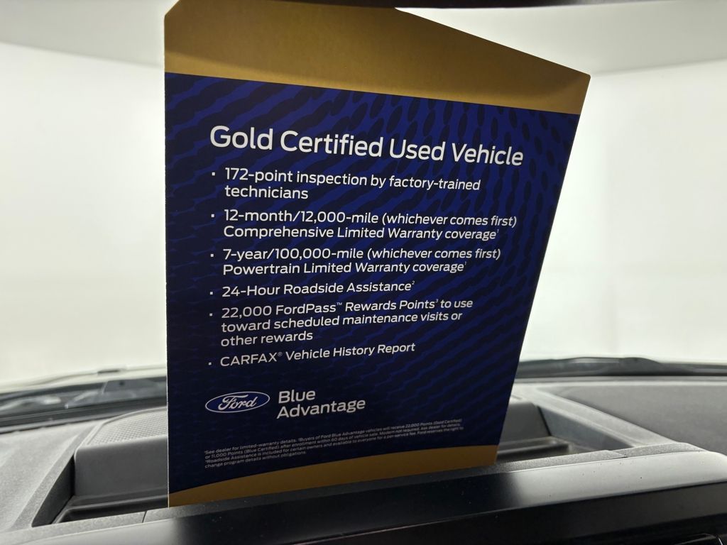 Ford Gold Certified includes:172 point vehicle inspection performed by a Ford Certified technician. 12-month/12,000-mile Comprehensive Limited Warranty coverage 7-year/100,000-mile Powertrain Limited Warranty coverage Gold Certification includes 22,000 FordPass Rewards Points Comprehensive Coverage: 12 months or 12,000 miles, whichever comes first, from the expiration of the new-vehicle bumperto-bumper limited warranty coverage or the date of sale as a certified vehicle, whichever is later. C