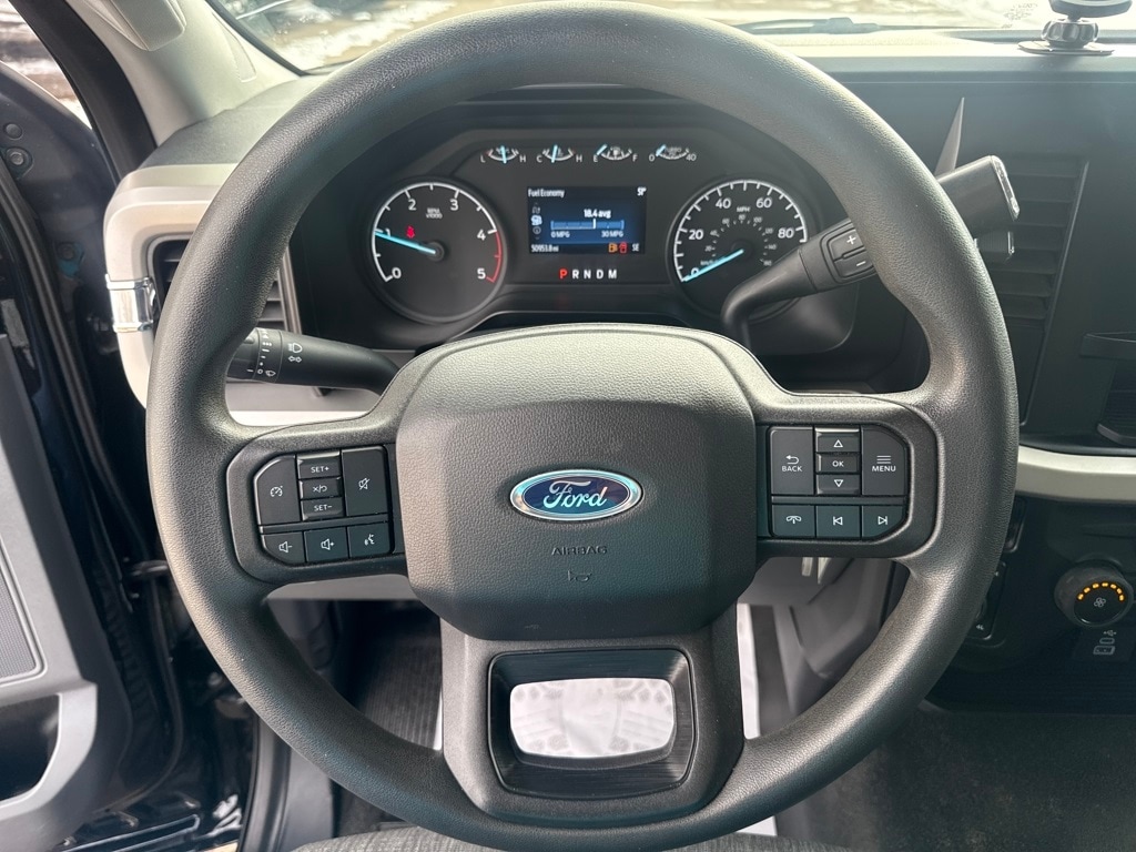 Camper Package (Rear Stabilizer Bar), FX4 Off-Road Package (Hill Descent Control, Off-Road Specifically Tuned Shock Absorbers, and Unique FX4 Off-Road Box Decal), GVWR: 10,900 lb Payload Package, Heavy-Service Front Suspension Package, Ford Certified, 4WD, 190 Amp Alternator, 4 Speakers, 4-Wheel Disc Brakes, ABS brakes, Air Conditioning, AM/FM radio, Brake assist, Cloth 40/20/40 Split Bench Seat, Compass, Delay-off headlights, Dual 68 AH/65 AGM Batteries, Dual front impact airbags, Dual front side impact airbags, Electronic Stability Control, Emergency communication system: SYNC 4 911 Assist, Engine Block Heater, Exterior Parking Camera Rear, Front anti-roll bar, Front Center Armrest w/Storage, Front reading lights, Fully automatic headlights, Heated door mirrors, Illuminated entry, LED Box Lighting, LED Roof Clearance Lights, Low tire pressure warning, Outside temperature display, Overhead airbag, Overhead console, Panic alarm, Passenger cancellable airbag, Passenger vanity mirror, Platform Running Boards, Power door mirrors, Power steering, Power windows, Rear step bumper, Remote keyless entry, Remote Start System, Speed control, Steering wheel mounted audio controls, SYNC 4, Tachometer, Telescoping steering wheel, Tilt steering wheel, Traction control, Trip computer, Turn signal indicator mirrors, Upfitter Switches (6), and Variably intermittent wipers.