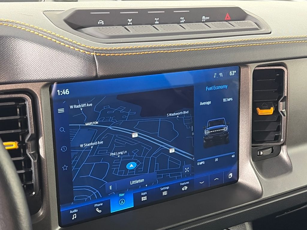 EQUIPMENT GROUP 334A HIGH/LUX PACKAGE Rear Parking Sensors, Power Outlet - Back Side of Center Floor Console, Auto-Dimming Interior Rearview Mirror, Dr & Pass Illuminated Sliding Visor Vanity Mirrors, Evasive Steering Assist, Heated Steering Wheel, Additional Sound Deadening, Information on Demand Panel, Wireless Charging Pad, Dual-Zone Electronic Automatic Temperature Control, air conditioning, Ford Co-Pilot360, Enables compatibility w/FordPass performance app w/off-road navigation, Auto High-Beam Headlamps, Pre-Collision Assist w/Automatic Emergency Braking, pedestrian detection, forward collision warning and dynamic brake support, Blind Spot Information System (BLIS), Cross-Traffic Alert, Rear View Camera, backup assist grid lines, Lane-Keeping System, Lane-Keeping Alert, Lane-Keeping, ENGINE: 2.7L ECOBOOST V6 electric brake boost, GVWR: 6,180 lbs, TRANSMISSION: 10-SPEED AUTOMATIC trail control, trail turn assist and trail one-pedal driving, 4.46 Axle Ratio. Ford Badlands with Carbonized Gray exterior and Black Onyx interior features a V6 Cylinder Engine with 315 HP at 5500 RPM*.
