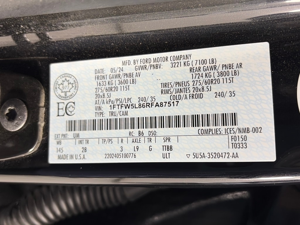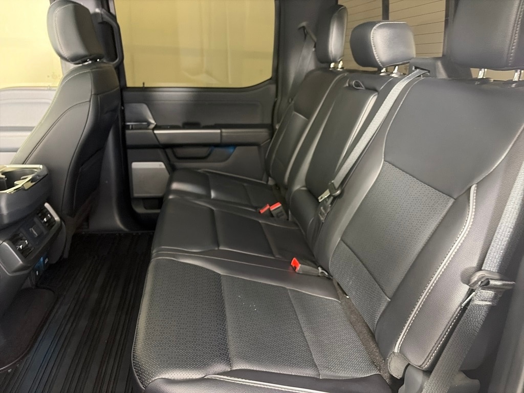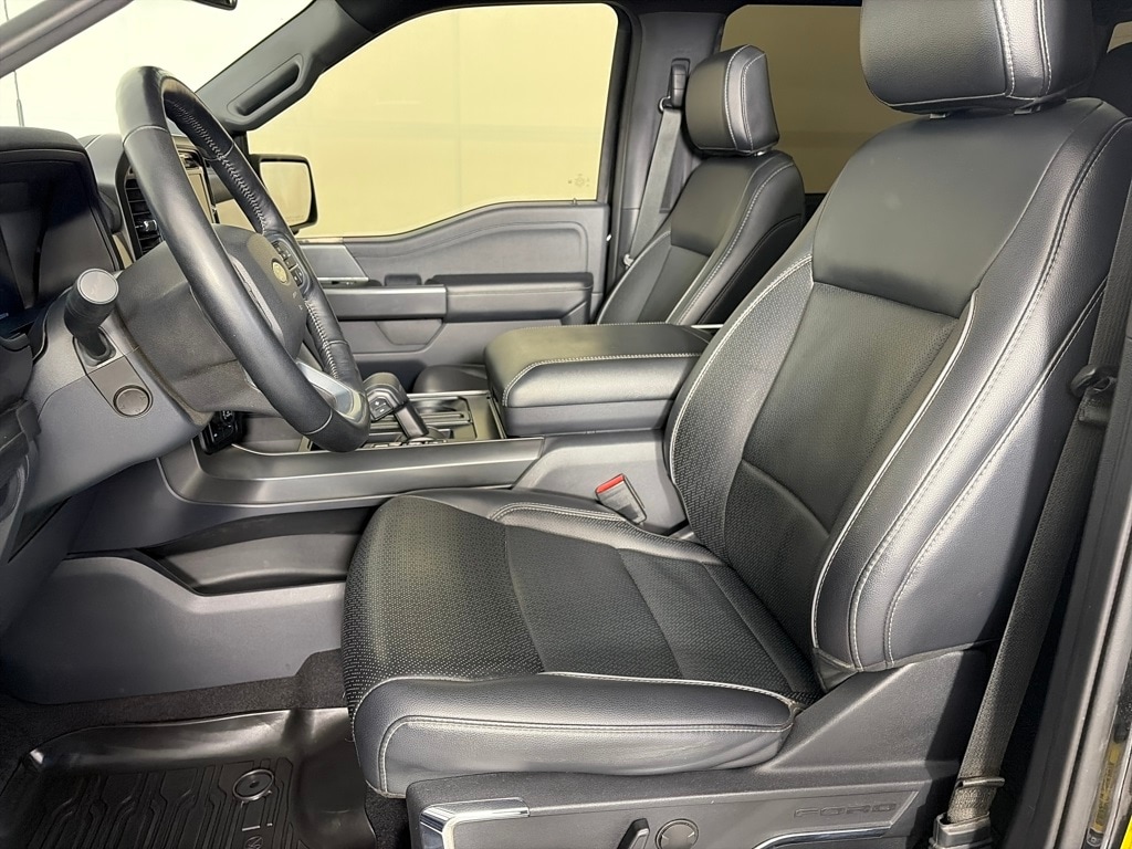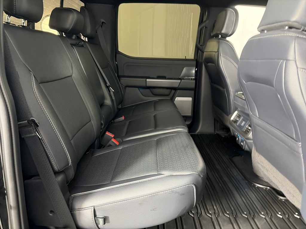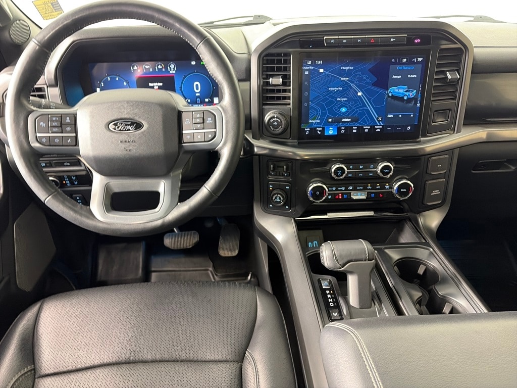BED UTILITY PACKAGE LED Box Lighting, Pro Access Tailgate, Power Tailgate, 4 Pickup Box Tie-Down Plates, 6 Extended Running Boards, TWIN PANEL MOONROOF, LARIAT BLACK APPEARANCE PACKAGE Black Grille, Black Exterior Badging, Gray Box Side Decal, Wheels: 20 Gloss Black Painted Aluminum, Body-Color Front & Rear Bumpers, Body-Color Skull Caps & Door Handles, Black Taillamp Bezels, Dual Exhaust w/Black Tips, Matte Black Tailgate F-150 Decal, Dark Interior Appliques, ELECTRONIC LOCKING W/3.55 AXLE RATIO, TRANSMISSION: ELECTRONIC 10-SPEED AUTOMATIC SelectShift w/progressive range select and selectable drive modes: normal, ECO, sport, tow/haul, slippery, deep snow/sand and mud/rut (STD). Ford LARIAT with Agate Black exterior and Black interior features a 8 Cylinder Engine with 400 HP at 6000 RPM*.