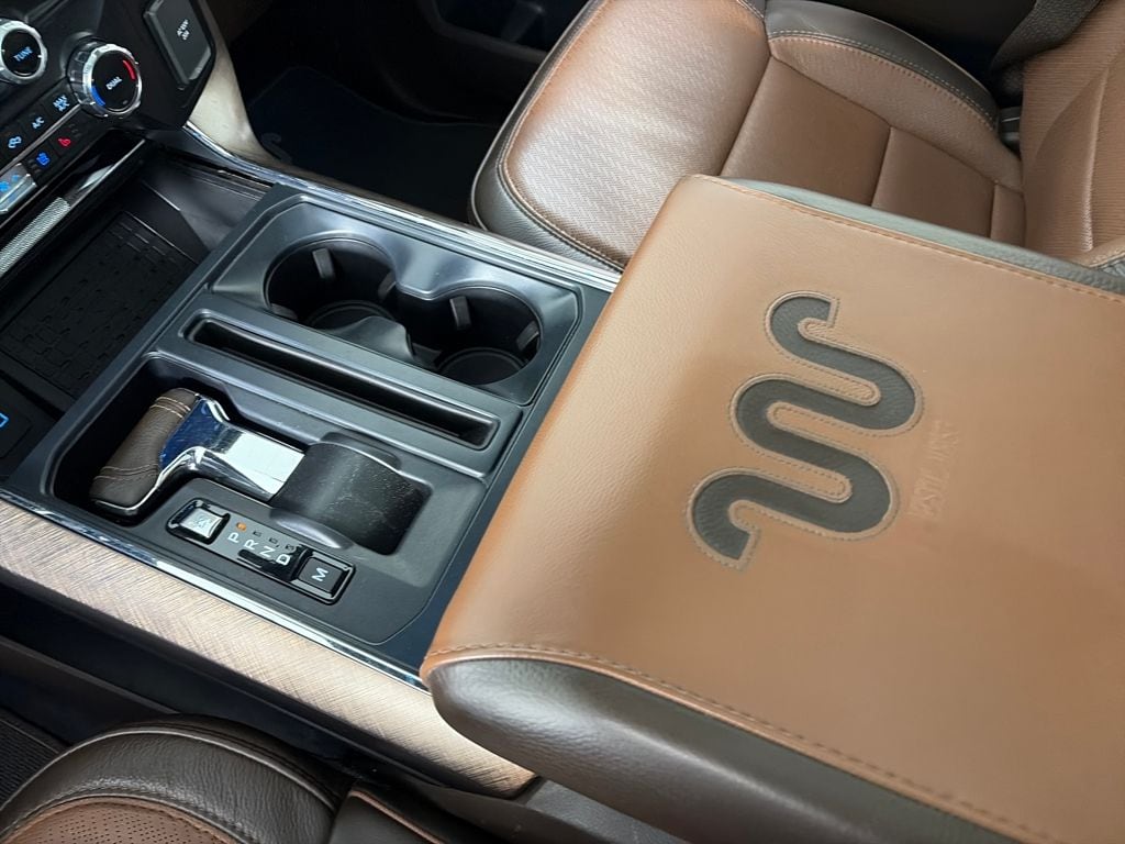 TRANSMISSION: ELECTRONIC 10-SPEED AUTOMATIC SelectShift w/progressive range select and selectable drive modes: normal, ECO, sport, tow/haul, slippery, deep snow/sand and mud/rut (STD). Ford King Ranch with Carbonized Gray/Darkened Bronze exterior and Norias/Mesa interior features a V6 Cylinder Engine with 400 HP at 6000 RPM*.