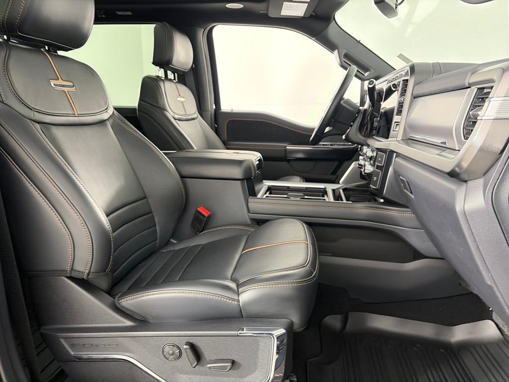 ENGINE: 6.7L 4V OHV POWER STROKE V8 TURBO DIESEL B20 manual push-button engine-exhaust braking, Operator Commanded Regeneration (OCR) and intelligent oil-life monitor, 34 Gallon Fuel Tank, GVWR: 12,000 lb Payload Package, 3.31 Axle Ratio, Dual 68 AH AGM 750 CCA Batteries, TWIN PANEL POWER MOONROOF map lights and moonroof switches, ELECTRONIC-LOCKING W/3.55 AXLE RATIO, TRANSMISSION: TORQSHIFT 10-SPEED AUTOMATIC SelectShift and selectable drive modes: normal, eco, slippery roads, tow/haul and off-road (STD). Ford Platinum with Agate Black exterior and Black Onyx interior features a 8 Cylinder Engine with 475 HP at 2600 RPM*.