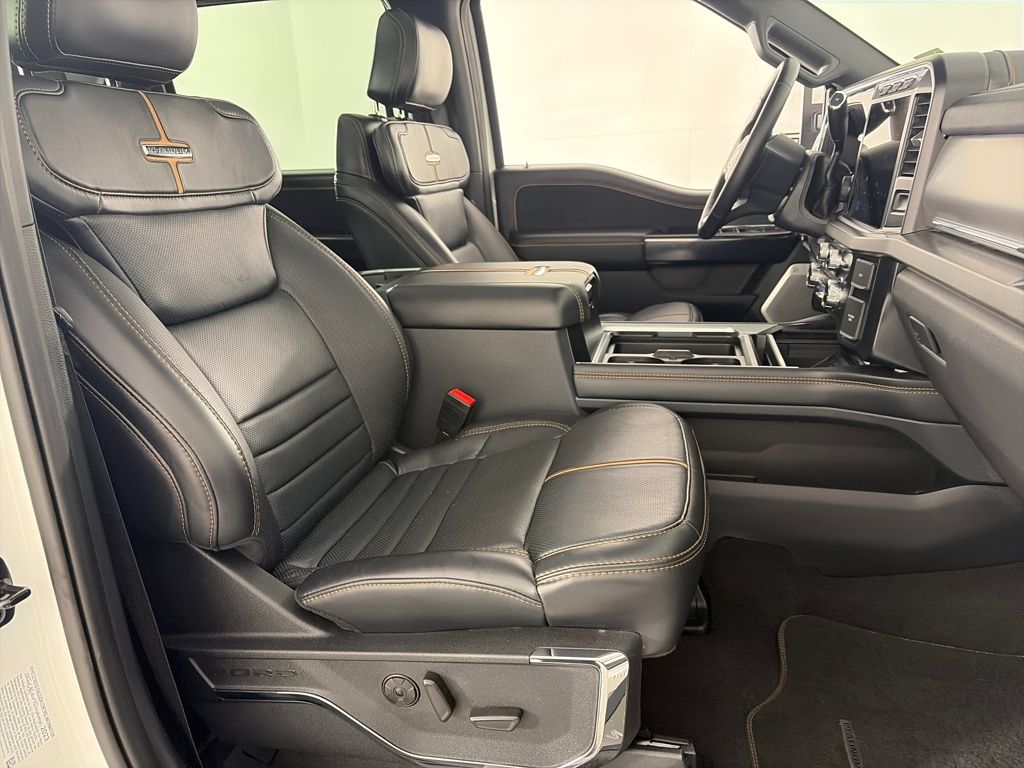 ENGINE: 6.7L HIGH OUTPUT POWER STROKE V8 DIESEL Turbo diesel B20, manual push-button engine-exhaust braking, Operator Commanded Regeneration (OCR) and intelligent oil-life monitor, 48 Gallon Fuel Tank, 3.55 Axle Ratio, Dual 68 AH AGM 750 CCA Batteries, TWIN PANEL POWER MOONROOF map lights and moonroof switches, LIMITED SLIP W/4.10 AXLE RATIO, MAX RECLINE SEATS 10-way power driver and 8-way power passenger and 4-way headrests, GOOSENECK HITCH KIT (PRE-INSTALLED), TRANSMISSION: TORQSHIFT 10-SPEED AUTOMATIC SelectShift and selectable drive modes: normal, eco, slippery roads, tow/haul and off-road (STD). Ford Platinum with Star White Metallic Tri-Coat exterior and Black Onyx interior features a 8 Cylinder Engine with 500 HP at 2600 RPM*.