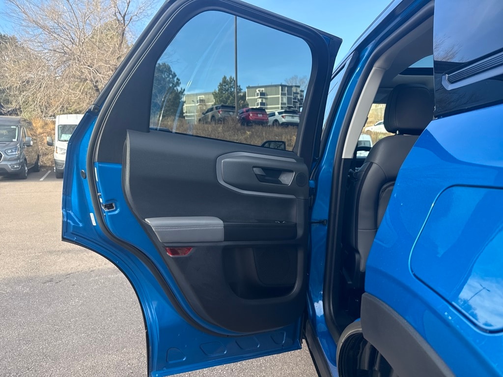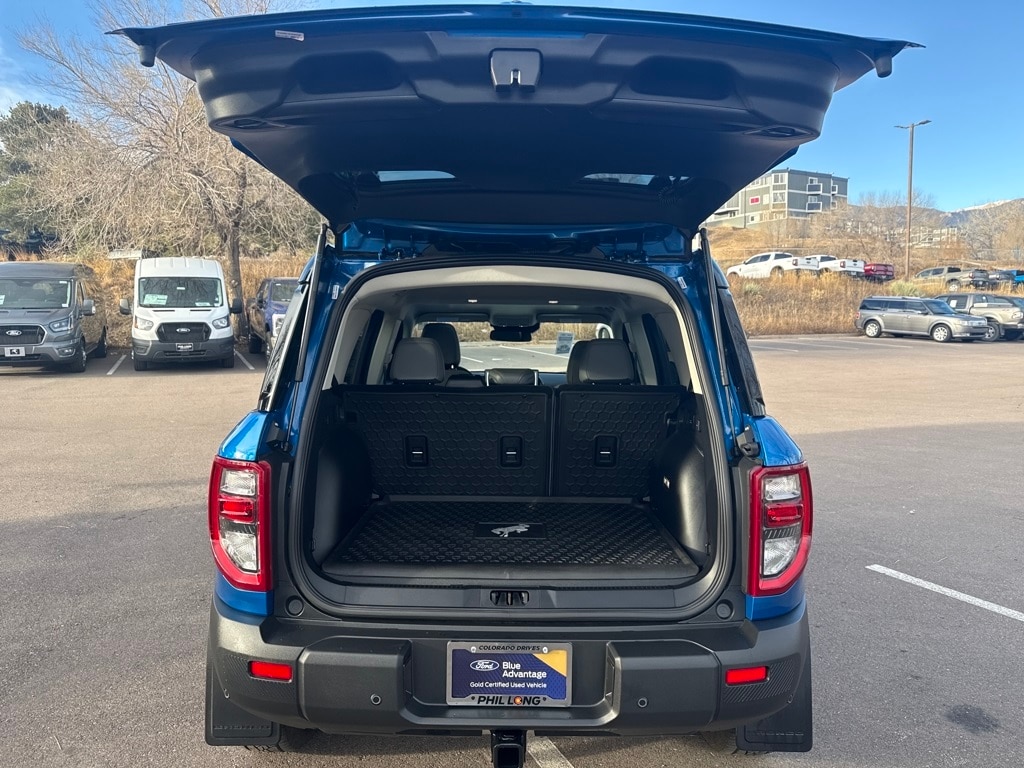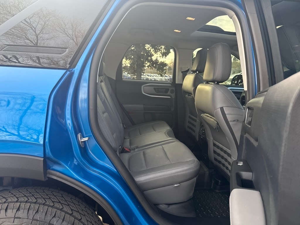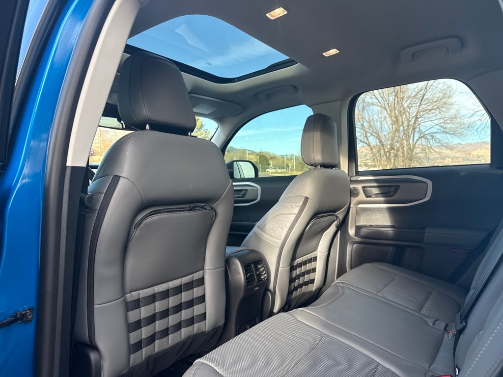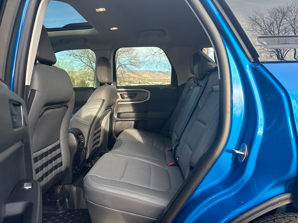 Badlands Tech Package (B&O Sound System by Bang & Olufsen, Connected Navigation, and HD Radio), Equipment Group 400A, Ford Gold Certified Certified, 4-Wheel Disc Brakes, 6 Speakers, ABS brakes, Air Conditioning, Alloy wheels, AM/FM radio: SiriusXM, AM/FM Stereo, Auto High-beam Headlights, Auto-dimming Rear-View mirror, Automatic temperature control, Brake assist, Compass, Delay-off headlights, Driver door bin, Driver vanity mirror, Dual front impact airbags, Dual front side impact airbags, Electronic Stability Control, Emergency communication system: SYNC 4 911 Assist, Four wheel independent suspension, Front anti-roll bar, Front Bucket Seats, Front Center Armrest, Front fog lights, Front License Plate Bracket, Front reading lights, Fully automatic headlights, Garage door transmitter, Heated door mirrors, Heated front seats, Heated steering wheel, Illuminated entry, Knee airbag, Leather Trimmed Front Bucket Seats, Low tire pressure warning, Memory seat, Occupant sensing airbag, Outside temperature display, Overhead airbag, Overhead console, Panic alarm, Passenger door bin, Passenger vanity mirror, Power door mirrors, Power driver seat, Power Moonroof, Power passenger seat, Power steering, Power windows, Radio data system, Rear anti-roll bar, Rear reading lights, Rear seat center armrest, Rear window defroster, Rear window wiper, Remote keyless entry, Security system, SiriusXM, Speed control, Speed-sensing steering, Speed-Sensitive Wipers, Split folding rear seat, Steering wheel mounted audio controls, SYNC 4 w/Enhanced Voice Recognition, Tachometer, Telescoping steering wheel, Tilt steering wheel, Traction control, Trip computer, Variably intermittent wipers, and Wheels: 17" Matte Black-Painted Aluminum.