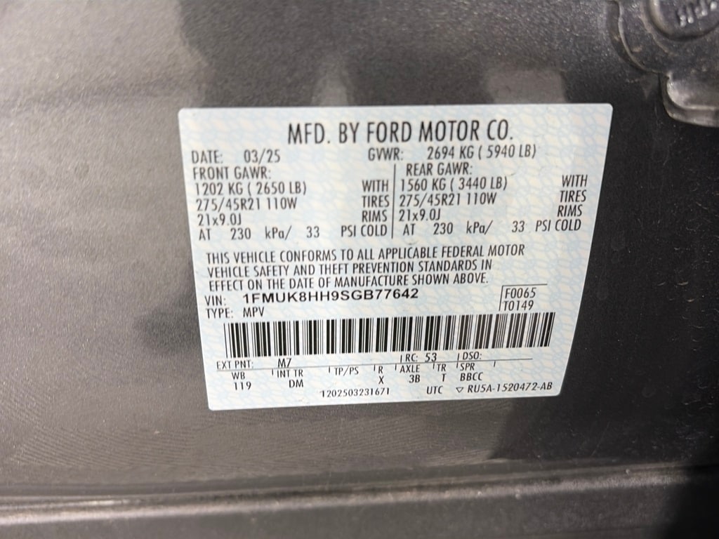 LUX LEATHER PACKAGE Quilting & Stitching on Seats, Quilting & Stitching on Door Panels, Platinum Badges on Front Row Seats, WHEELS: 21 BRIGHT MACHINED ALUM W/TARNISH DK PKTS Tires: P275/45R21 AS BSW, FORD BLUECRUISE EQUIPPED (1-YEAR PLAN) See ford.com/bluecruise for version details, Select option to purchase 1 year of BlueCruise access at time of vehicle order, After this initial duration, customers need to purchase a subscription to continue using BlueCruise, See subscription options and pricing on ford.com/bluecruise, Not available to military personnel sales (WAFAC), TRANSMISSION: 10-SPEED AUTOMATIC (STD). Ford Platinum with Carbonized Gray exterior and Salt Crystal/Onyx interior features a 4 Cylinder Engine with 300 HP at 5500 RPM*.