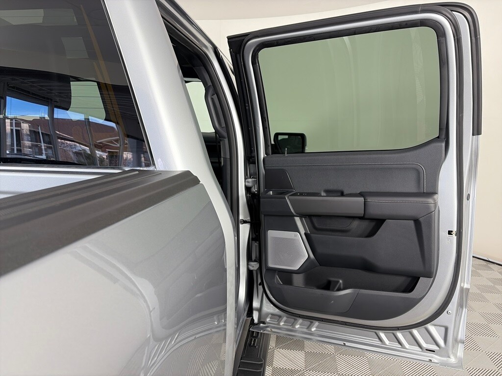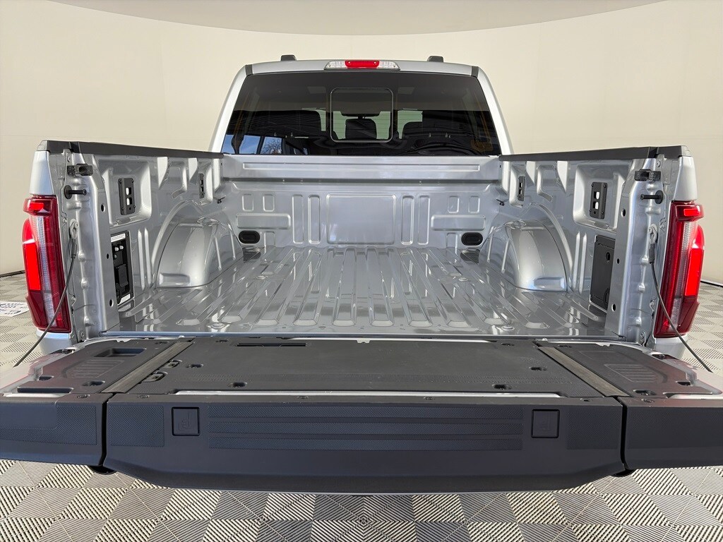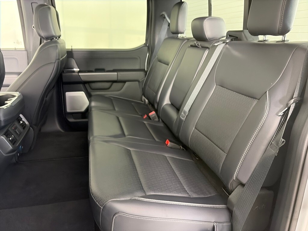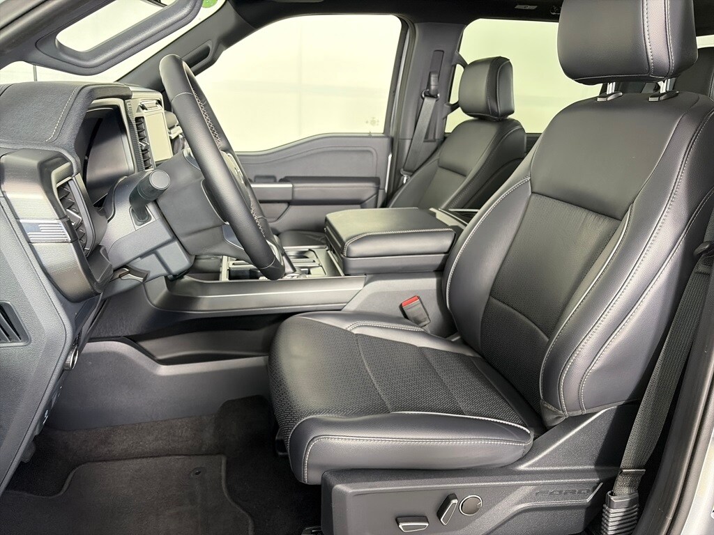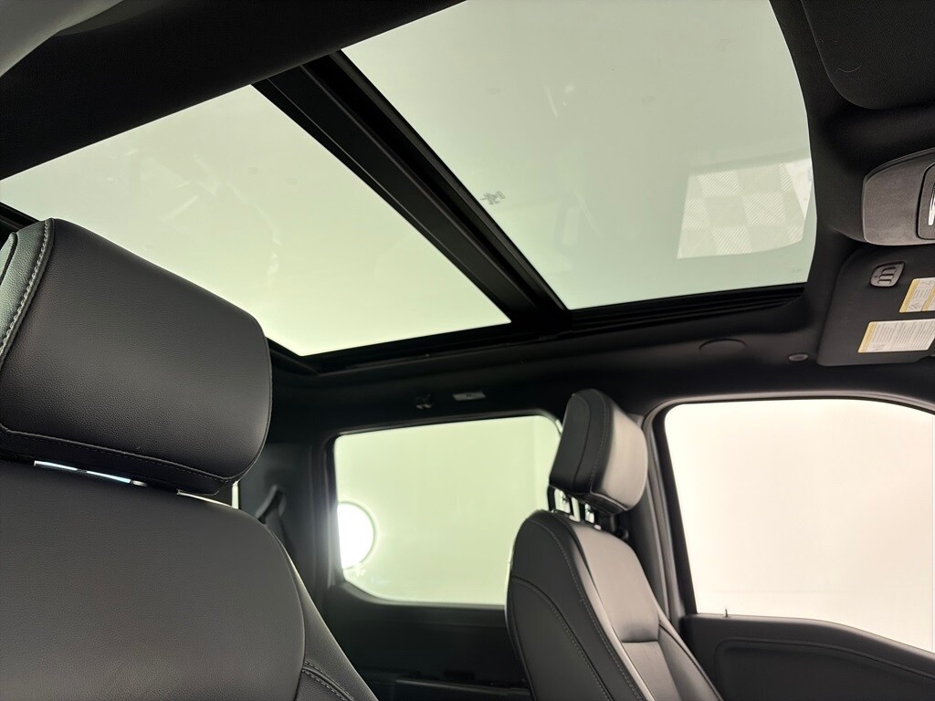 EQUIPMENT GROUP 502A HIGH Ambient Lighting - Ice Blue Color Only, Wheels: 20 Chrome-Like PVD, Radio: B&O Unleashed Sound System by Bang & Olufsen, HD Radio and 14 speakers including subwoofer, 2nd Row Heated Seats, Mobile Office Package, Wireless Charging, Partitioned Lockable Rear Storage, Console Worksurface, 6 Extended Angular Bright Anodized Step Bar, Power-Sliding Rear Window, Heads-Up Display, Illuminated Driver & Passenger Visors, covered mirrors, Tires: 275/60R20 All-Terrain, ENGINE: 3.5L POWERBOOST FULL-HYBRID V6 Pro Power Onboard 2.4KW and removes 36 gallon fuel tank, GVWR: 7,400 lbs Payload Package, Electronic Locking w/3.73 Axle Ratio, TWIN PANEL MOONROOF. Ford LARIAT with Iconic Silver exterior and Black interior features a V6 Cylinder Engine with 430 HP at 6000 RPM*.