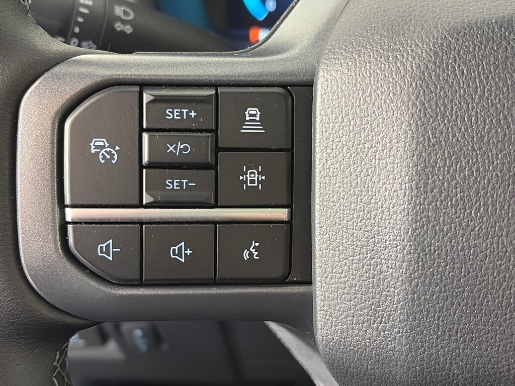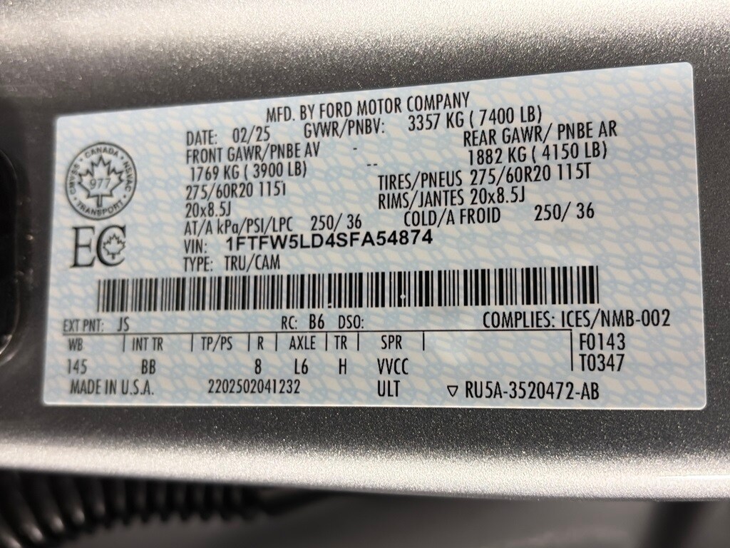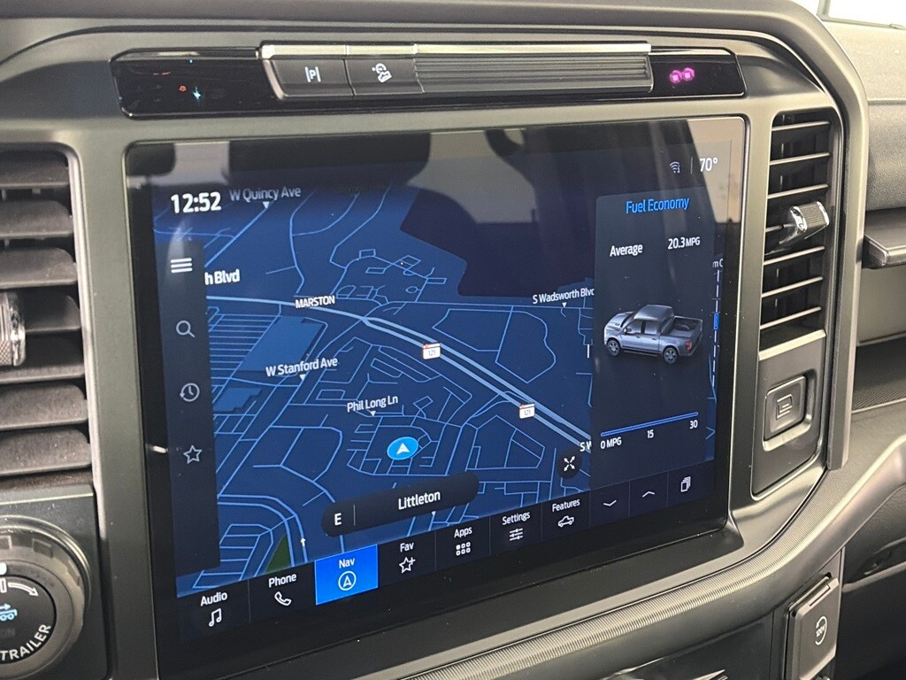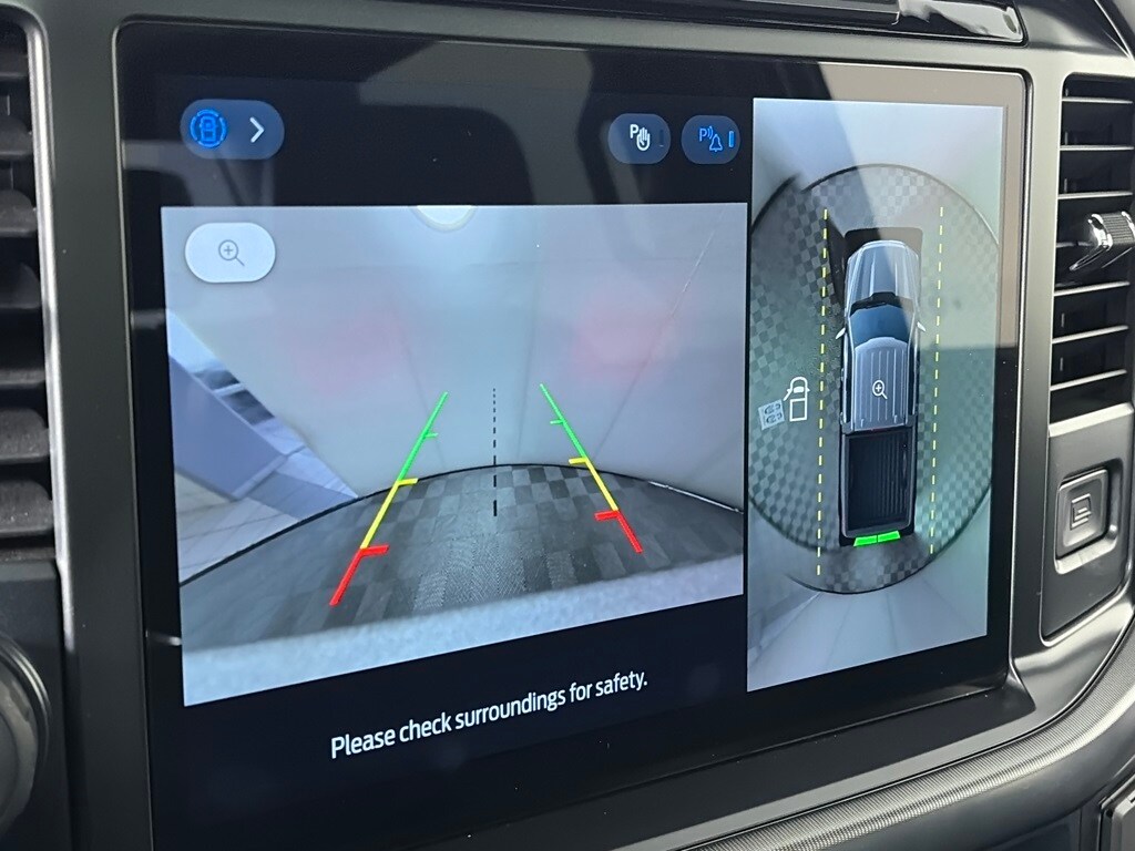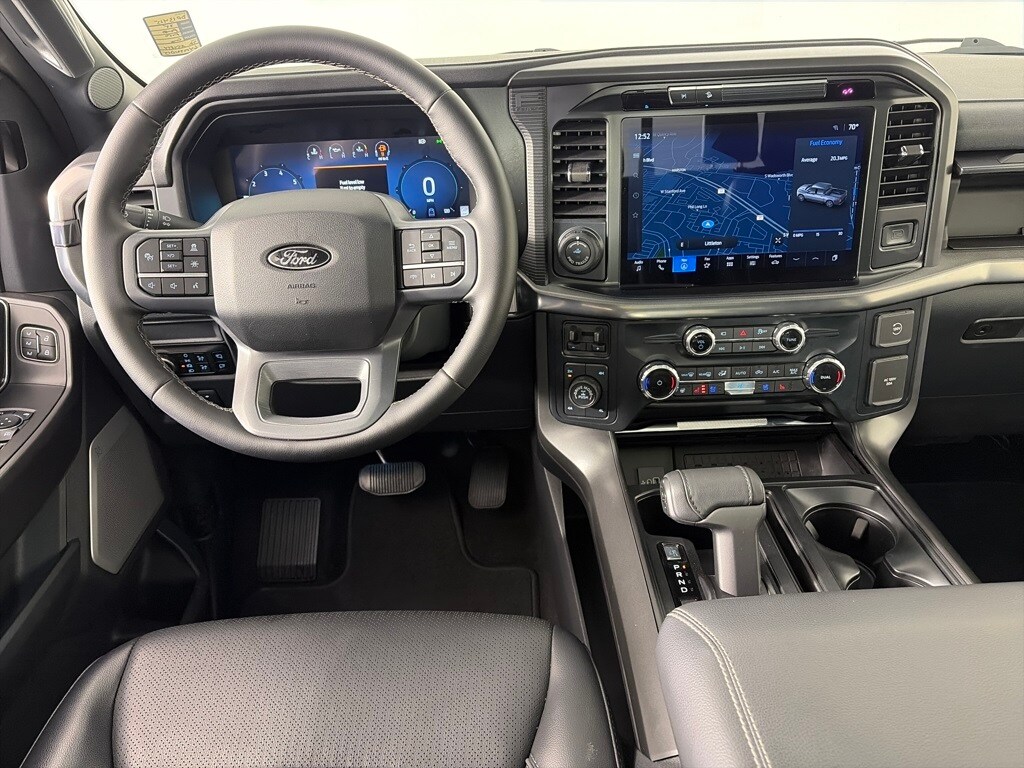 EQUIPMENT GROUP 502A HIGH Ambient Lighting - Ice Blue Color Only, Wheels: 20 Chrome-Like PVD, Radio: B&O Unleashed Sound System by Bang & Olufsen, HD Radio and 14 speakers including subwoofer, 2nd Row Heated Seats, Mobile Office Package, Wireless Charging, Partitioned Lockable Rear Storage, Console Worksurface, 6 Extended Angular Bright Anodized Step Bar, Power-Sliding Rear Window, Heads-Up Display, Illuminated Driver & Passenger Visors, covered mirrors, Tires: 275/60R20 All-Terrain, ENGINE: 3.5L POWERBOOST FULL-HYBRID V6 Pro Power Onboard 2.4KW and removes 36 gallon fuel tank, GVWR: 7,400 lbs Payload Package, Electronic Locking w/3.73 Axle Ratio, TWIN PANEL MOONROOF. Ford LARIAT with Iconic Silver exterior and Black interior features a V6 Cylinder Engine with 430 HP at 6000 RPM*.