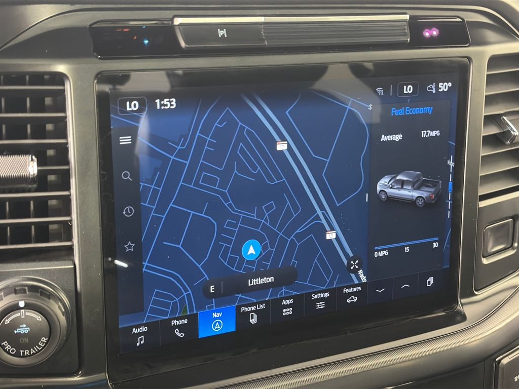 EQUIPMENT GROUP 502A HIGH Ambient Lighting - Ice Blue Color Only, Wheels: 20 Chrome-Like PVD, Radio: B&O Unleashed Sound System by Bang & Olufsen, HD Radio and 14 speakers including subwoofer, 2nd Row Heated Seats, Mobile Office Package, Wireless Charging, Partitioned Lockable Rear Storage, Console Worksurface, 6 Extended Angular Bright Anodized Step Bar, Power-Sliding Rear Window, Heads-Up Display, Illuminated Driver & Passenger Visors, covered mirrors, Tires: 275/60R20 All-Terrain, TWIN PANEL MOONROOF, ELECTRONIC LOCKING W/3.55 AXLE RATIO, TRANSMISSION: ELECTRONIC 10-SPEED AUTOMATIC SelectShift w/progressive range select and selectable drive modes: normal, ECO, sport, tow/haul, slippery, deep snow/sand and mud/rut (STD). Ford LARIAT with Antimatter Blue exterior and Black interior features a 8 Cylinder Engine with 400 HP at 6000 RPM*.