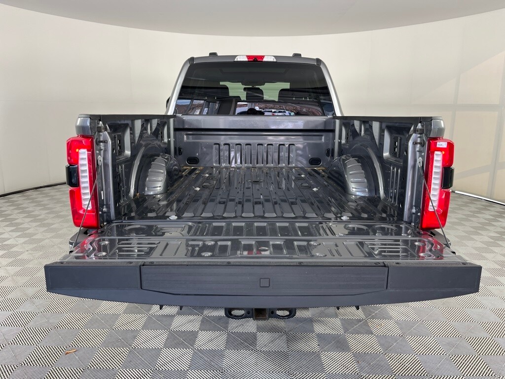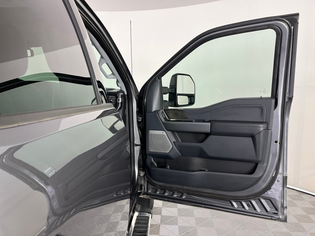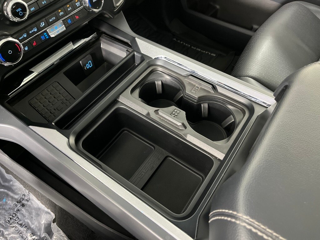 ENGINE: 6.7L HIGH OUTPUT POWER STROKE V8 DIESEL Turbo diesel B20, manual push-button engine-exhaust braking and Operator Commanded Regeneration (OCR), 250 Amp Alternator, 34 Gallon Fuel Tank, GVWR: 12,000 lb Payload Package, 3.31 Axle Ratio, Dual AGM 68 AH Battery, TWIN PANEL POWER MOONROOF map lights and moonroof switches, 6 ANGULAR BRIGHT ANODIZED STEP BARS, ELECTRONIC-LOCKING W/3.55 AXLE RATIO, TAILGATE STEP & HANDLE, TRANSMISSION: TORQSHIFT 10-SPEED AUTOMATIC SelectShift and selectable drive modes: normal, eco, slippery roads, tow/haul and off-road. Ford LARIAT with Carbonized Gray exterior and Black Onyx interior features a 8 Cylinder Engine with 500 HP at 2600 RPM*.