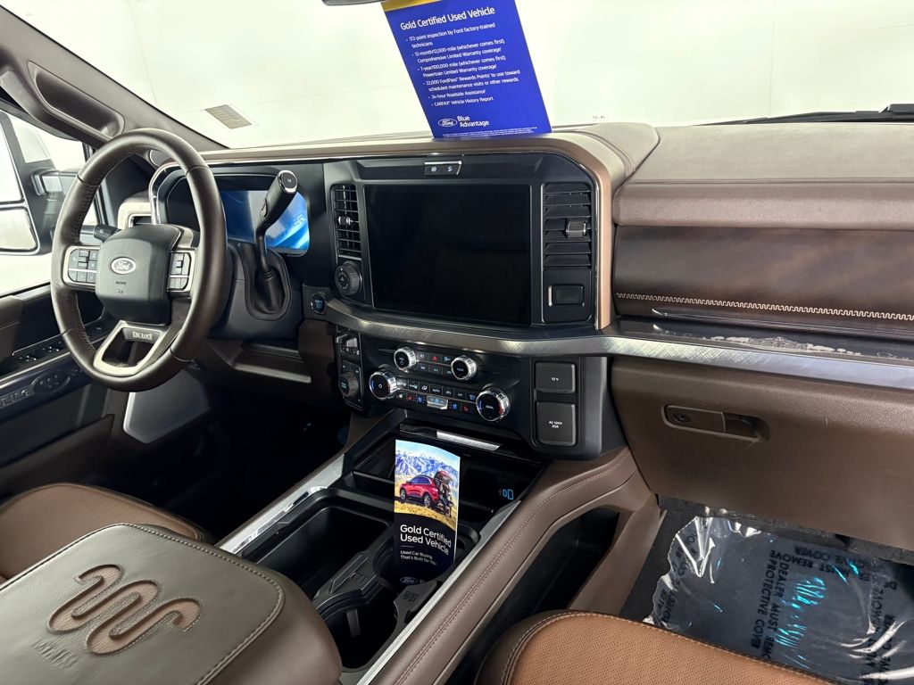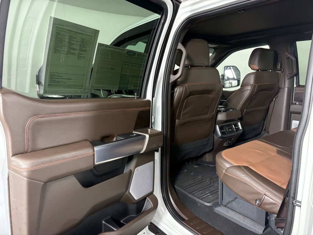 ENGINE: 6.7L HIGH OUTPUT POWER STROKE V8 DIESEL Turbo diesel B20, manual push-button engine-exhaust braking and Operator Commanded Regeneration (OCR), TWIN PANEL POWER MOONROOF map lights and moonroof switches, CHROME PACKAGE Chrome Front & Rear Bumpers, Chrome Door Handles, Unique Chrome Mirror Caps, Monochromatic Paint, Chrome Exhaust Tip, TOUGH BED SPRAY-IN BEDLINER tailgate-guard, black box bed tie-down hooks and black bed attachment bolts, TRANSMISSION: TORQSHIFT 10-SPEED AUTOMATIC SelectShift and selectable drive modes: normal, eco, slippery roads, tow/haul and off-road (STD). Ford King Ranch with Star White Metallic Tri-Coat exterior and Java interior features a 8 Cylinder Engine with 500 HP at 2600 RPM*.