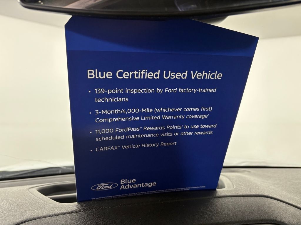 Ford Blue Certified includes:139 point vehicle inspection performed by an ASE Certified technician 3-month/4,000-mile Comprehensive Limited Warranty coverage that is fully competitive with other online retailers Blue Certification includes 11,000 FordPass Rewards Points For other manufacturers not listed above, Comprehensive Coverage is provided for 3 months or 4,000 miles, whichever comes first, from the signature date of the Ford Blue Advantage â"