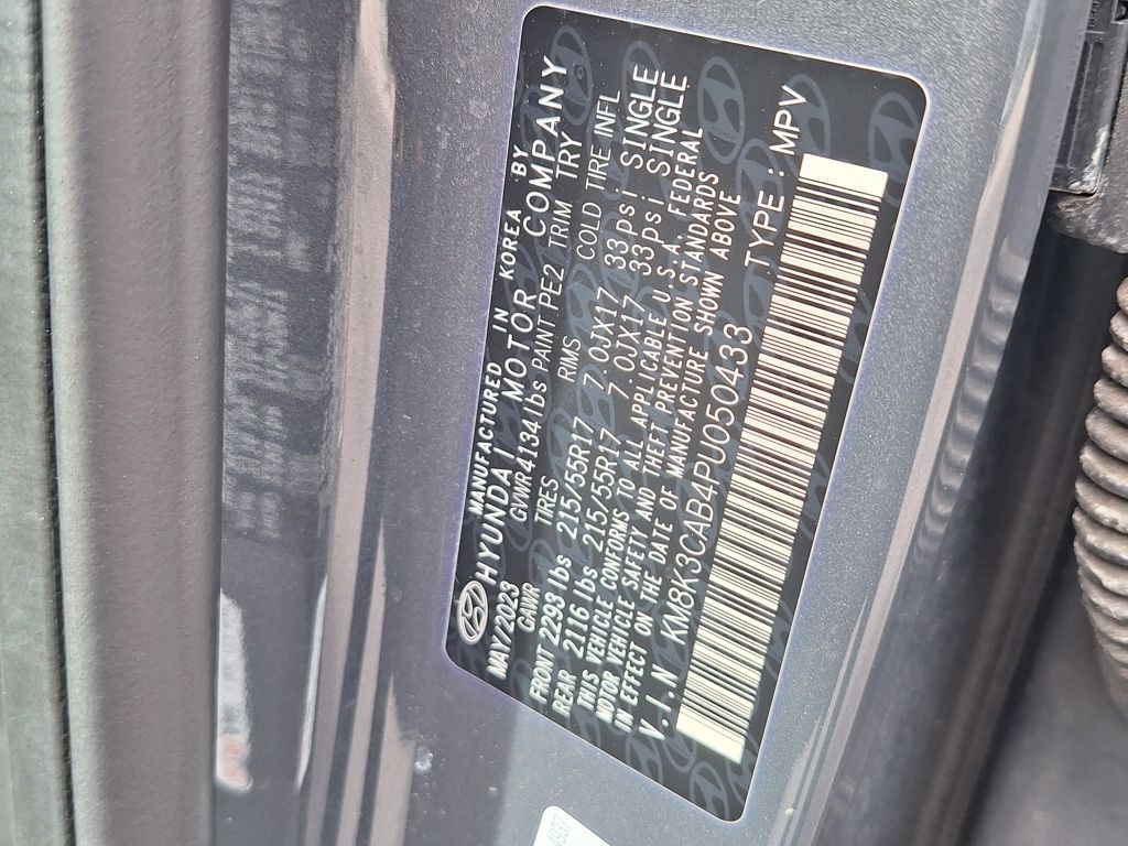 Cargo Package (Cargo Blocks, Cargo Net, and Cargo Tray), Convenience Package (Automatic Temperature Control, Heated Front Seats, Hidden Cargo-Area Storage Compartment, Hyundai Digital Key, Leather-Wrapped Shift Knob, Leather-Wrapped Steering Wheel, Option Group 02, Power Tilt-and-Slide Sunroof, Radio: AM/FM/SiriusXM/HD Audio System, and Wireless Device Charging), Hyundai Certified Used Vehicles Certified, 17" x 7.0J Alloy Wheels, 4-Wheel Disc Brakes, 5.715 Axle Ratio, 6 Speakers, ABS brakes, Air Conditioning, Alloy wheels, AM/FM radio: SiriusXM, Apple CarPlay & Android Auto, Brake assist, Bumpers: body-color, Carpeted Floor Mats, Cloth Seat Trim, Delay-off headlights, Driver door bin, Driver vanity mirror, Dual front impact airbags, Dual front side impact airbags, Electronic Stability Control, Emergency communication system: Blue Link Connected Car Service (3-year complimentary subscription), Exterior Parking Camera Rear, First Aid Kit, Four wheel independent suspension, Front anti-roll bar, Front Bucket Seats, Front Center Armrest, Front reading lights, Fully automatic headlights, Heated door mirrors, Illuminated entry, Low tire pressure warning, Occupant sensing airbag, Outside temperature display, Overhead airbag, Overhead console, Panic alarm, Passenger door bin, Passenger vanity mirror, Power door mirrors, Power driver seat, Power steering, Power windows, Radio: AM/FM/HD/SiriusXM Audio System, Rear anti-roll bar, Rear seat center armrest, Rear window defroster, Rear window wiper, Remote keyless entry, Security system, Speed control, Speed-sensing steering, Split folding rear seat, Spoiler, Steering wheel mounted audio controls, Tachometer, Telescoping steering wheel, Tilt steering wheel, Traction control, Trip computer, Turn signal indicator mirrors, and Variably intermittent wipers.