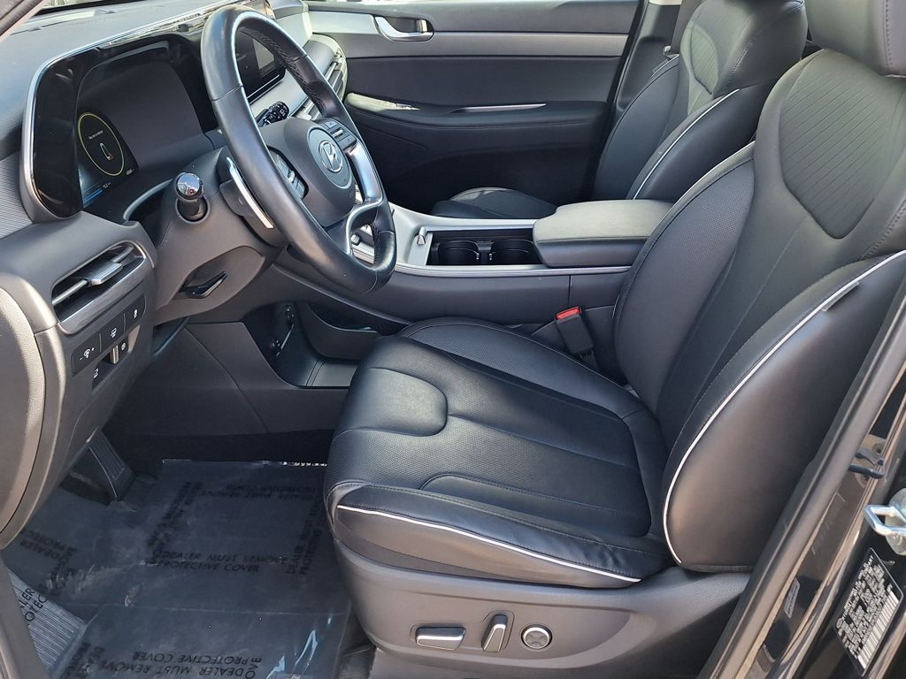 8-Passenger Bench Seating (115-Volt AC Power Outlet, 12.3" Full-Digital Multi-Information Display, 3rd Row USB Outlets, 8-Passenger Seating, Acoustic Rear Side Glass, Auto Leveling Rear Suspension, Blind-Spot View Monitor, Driver 4-Way Power Lumbar Support, Driver Talk (In-Car Intercom), Forward Collision Avoidance Assist, Front Parking Sensors, harman/kardon® Audio System, Heated 2nd Row Seats, Heated Steering Wheel, Highway Driving Assist II (HDA), Hydro-Phobic Front Side Glass, Integrated Memory Driver Seat & Mirrors, Power Sunroof, Rear Side Window Sunshades, Surround View Monitor, Ventilated Front & 2nd-Row Seats, and Wheels: 20" x 7.5J Alloy), Hyundai Certified Used Vehicles Certified, 3.648 Axle Ratio, 3rd row seats: split-bench, 4-Wheel Disc Brakes, 6 Speakers, ABS brakes, Air Conditioning, Alloy wheels, AM/FM radio: SiriusXM, Apple CarPlay & Android Auto, Auto High-beam Headlights, Auto-dimming door mirrors, Auto-dimming Rear-View mirror, Automatic temperature control, Brake assist, Bumpers: body-color, Cargo Net, Cargo Tray, Carpeted Floor Mats, Delay-off headlights, Driver door bin, Driver vanity mirror, Dual front impact airbags, Dual front side impact airbags, Electronic Stability Control, Emergency communication system: Blue Link Connected Car Service (3-year complimentary subscription), Exterior Parking Camera Rear, Four wheel independent suspension, Front anti-roll bar, Front Bucket Seats, Front Center Armrest, Front dual zone A/C, Front reading lights, Fully automatic headlights, Garage door transmitter: HomeLink, H-Tex Leatherette Seat Trim, Heated door mirrors, Heated Front Bucket Seats, Heated front seats, Illuminated entry, Knee airbag, Low tire pressure warning, Navigation System, Occupant sensing airbag, Outside temperature display, Overhead airbag, Overhead console, Panic alarm, Passenger door bin, Passenger vanity mirror, Power door mirrors, Power driver seat, Power Liftgate, Power passenger seat, Power steering, Power windows, Radio data system, Radio: AM/FM/MP3 Audio System, Rear air conditioning, Rear anti-roll bar, Rear audio controls, Rear Bumper Applique, Rear reading lights, Rear side impact airbag, Rear window defroster, Rear window wiper, Reclining 3rd row seat, Remote keyless entry, Roof Rack Cross Rails (DISC), Security system, Speed control, Speed-sensing steering, Split folding rear seat, Spoiler, Steering wheel mounted audio controls, Tachometer, Telescoping steering wheel, Tilt steering wheel, Traction control, Trip computer, Turn signal indicator mirrors, Variably intermittent wipers, and Wheels: 18" x 7.5J Machine-Faced Alloy.