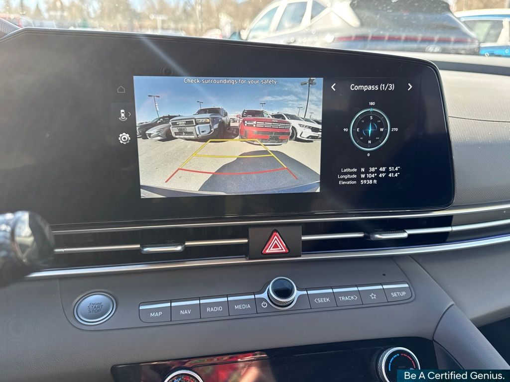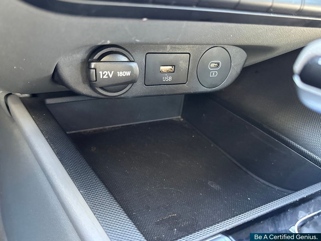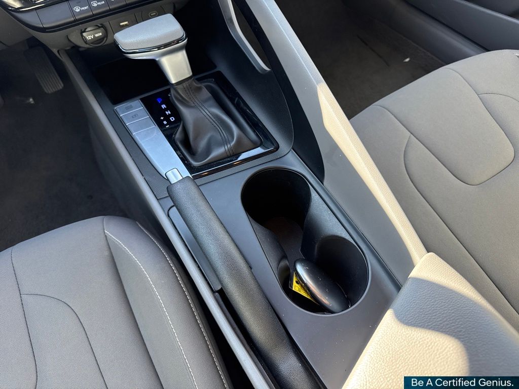 Option Group 01, Hyundai Certified Used Vehicles Certified, 16" x 6.5J Alloy Wheels, 4-Wheel Disc Brakes, 6 Speakers, ABS brakes, Air Conditioning, Alloy wheels, AM/FM radio: SiriusXM, Apple CarPlay & Android Auto, Auto High-beam Headlights, Automatic temperature control, Brake assist, Bumpers: body-color, Cloth Seat Trim, Delay-off headlights, Driver door bin, Driver vanity mirror, Dual front impact airbags, Dual front side impact airbags, Electronic Stability Control, Emergency communication system: Bluelink+, Exterior Parking Camera Rear, Front anti-roll bar, Front Bucket Seats, Front Center Armrest, Front dual zone A/C, Front reading lights, Front wheel independent suspension, Fully automatic headlights, Illuminated entry, Low tire pressure warning, Navigation System, Occupant sensing airbag, Outside temperature display, Overhead airbag, Overhead console, Panic alarm, Passenger door bin, Passenger vanity mirror, Power door mirrors, Power steering, Power windows, Radio: AM/FM/HD/SiriusXM Display Audio, Rear side impact airbag, Rear window defroster, Remote keyless entry, Security system, Speed control, Speed-sensing steering, Steering wheel mounted audio controls, Tachometer, Telescoping steering wheel, Tilt steering wheel, Traction control, Trip computer, and Variably intermittent wipers.