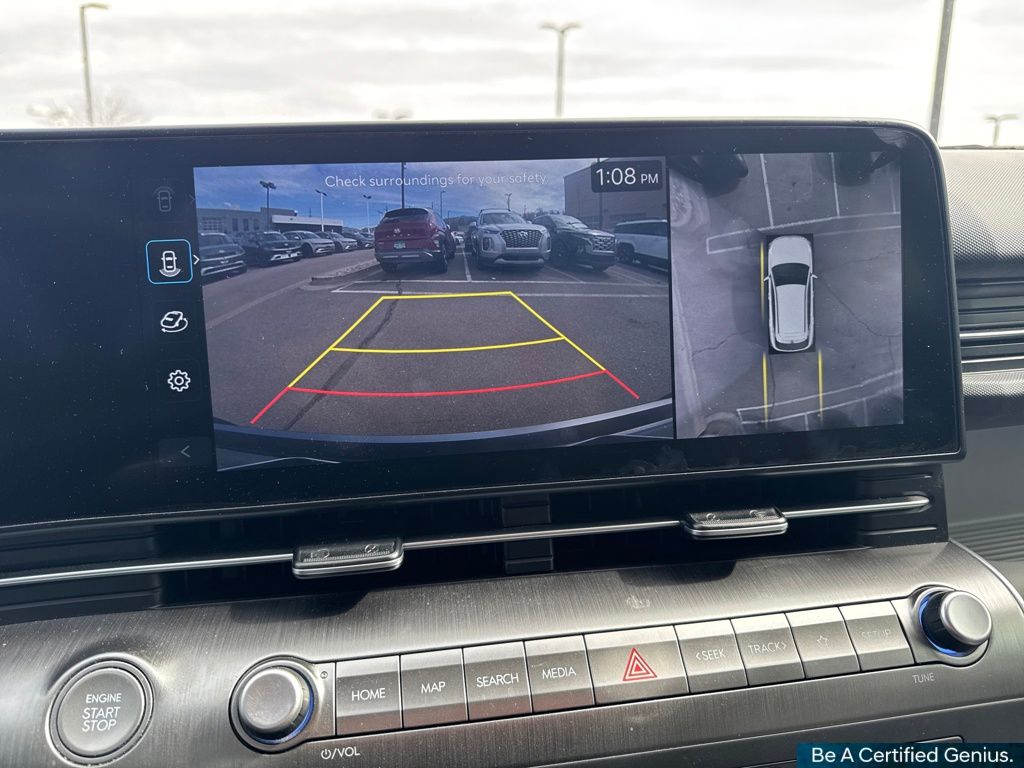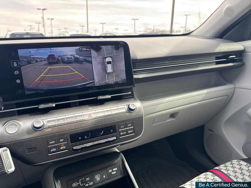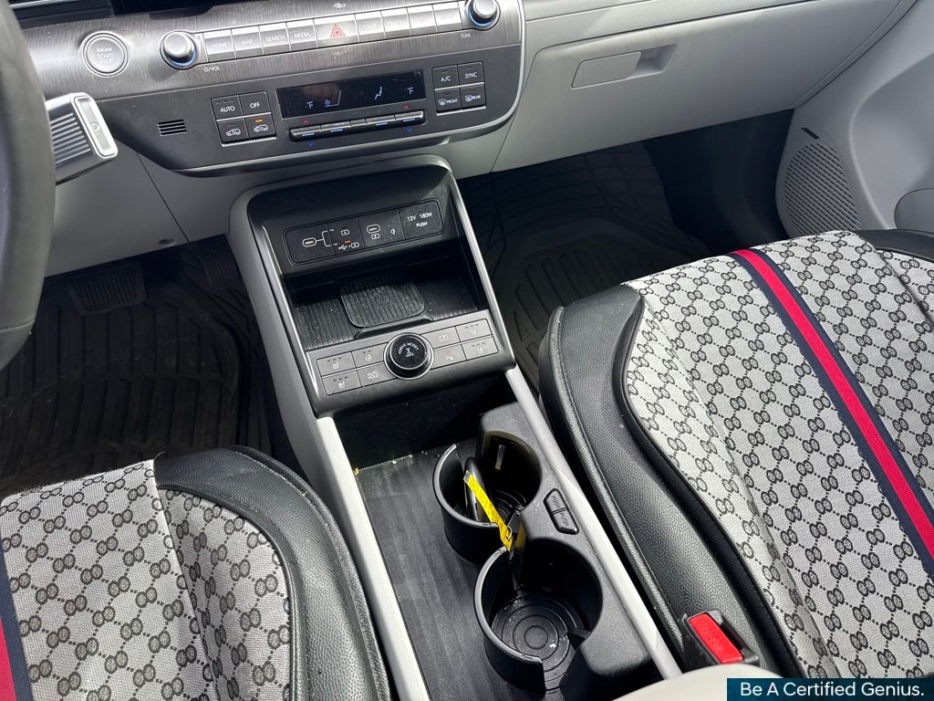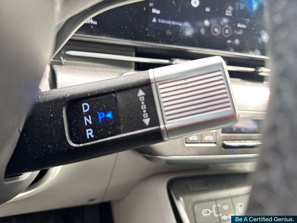 Option Group 01, Hyundai Certified Used Vehicles Certified, 3.510 Axle Ratio, 4-Wheel Disc Brakes, 8 Speakers, ABS brakes, Air Conditioning, Alloy wheels, AM/FM radio: SiriusXM, Apple CarPlay & Android Auto, Auto High-beam Headlights, Auto-dimming Rear-View mirror, Automatic temperature control, Brake assist, Bumpers: body-color, Cargo Net, Cargo Tray, Carpeted Floor Mats, Column-Mounted Shift-By-Wire, Delay-off headlights, Driver door bin, Driver vanity mirror, Dual front impact airbags, Dual front side impact airbags, Electronic Stability Control, Emergency communication system: Bluelink+, Four wheel independent suspension, Front anti-roll bar, Front Bucket Seats, Front Center Armrest, Front dual zone A/C, Front reading lights, Fully automatic headlights, Garage door transmitter: HomeLink, H-Tex Leatherette Seat Trim, Heated & Ventilated Front Bucket Seats, Heated door mirrors, Heated front seats, Heated steering wheel, Illuminated entry, Leather Shift Knob, Leather steering wheel, Low tire pressure warning, Mud Guards, Navigation System, Occupant sensing airbag, Outside temperature display, Overhead airbag, Panic alarm, Passenger door bin, Passenger vanity mirror, Power door mirrors, Power driver seat, Power Liftgate, Power moonroof, Power steering, Power windows, Radio: AM/FM/HD Radio/SiriusXM Audio System, Rear anti-roll bar, Rear seat center armrest, Rear window defroster, Rear window wiper, Remote keyless entry, Security system, Speed control, Speed-sensing steering, Split folding rear seat, Spoiler, Steering wheel mounted audio controls, Tachometer, Telescoping steering wheel, Tilt steering wheel, Traction control, Trip computer, Turn signal indicator mirrors, Variably intermittent wipers, Ventilated front seats, and Wheels: 19" x 7.5J Glossy Black Alloy.