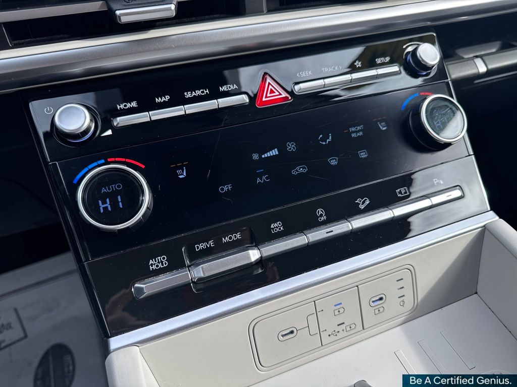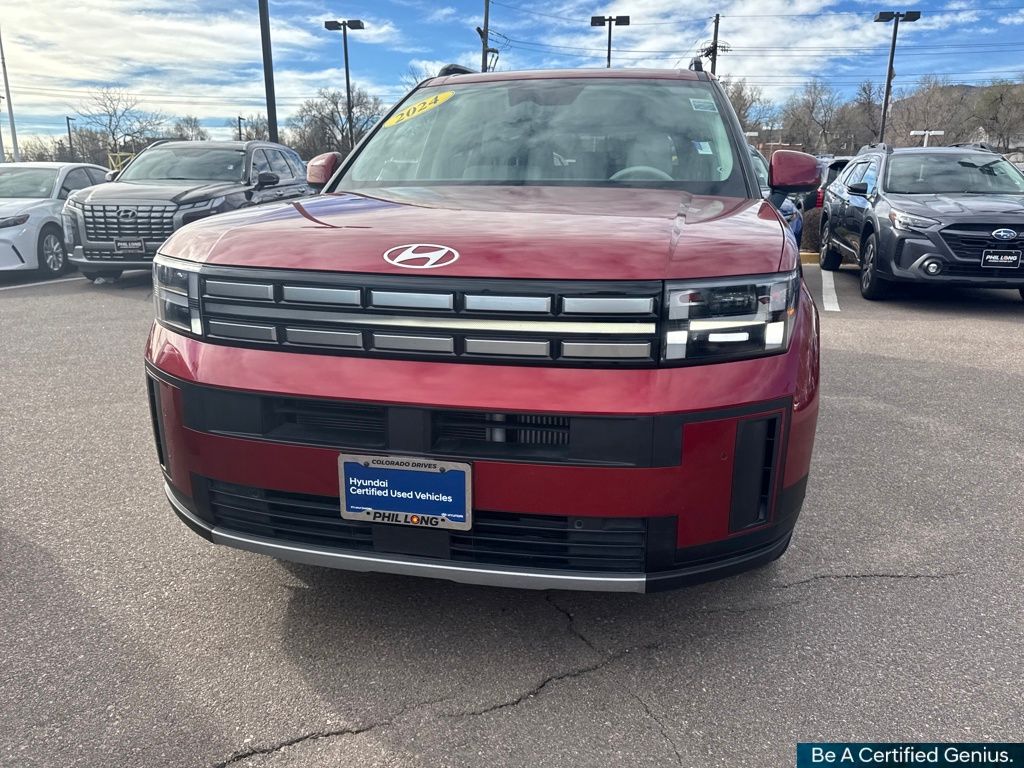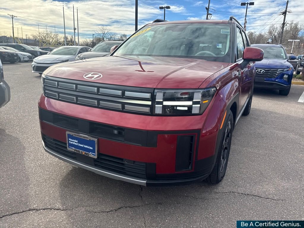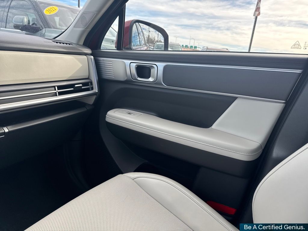Option Group 01, Hyundai Certified Used Vehicles Certified, AWD, Gray Premium Synthetic, 18" x 7.5J Alloy Wheels, 3rd row seats: bench, 4-Wheel Disc Brakes, 6 Speakers, ABS brakes, Air Conditioning, Alloy wheels, AM/FM radio: SiriusXM, Apple CarPlay & Android Auto, Auto High-beam Headlights, Automatic temperature control, Axle Ratio: 3.316, Brake assist, Bumpers: body-color, Delay-off headlights, Driver door bin, Driver vanity mirror, Dual front impact airbags, Dual front side impact airbags, Electronic Stability Control, Emergency communication system, Exterior Parking Camera Rear, Four wheel independent suspension, Front anti-roll bar, Front Bucket Seats, Front Center Armrest, Front dual zone A/C, Front reading lights, Fully automatic headlights, H-Tex Leatherette Seat Trim, Heated door mirrors, Heated Front Bucket Seats, Heated front seats, Illuminated entry, Knee airbag, Leather steering wheel, Low tire pressure warning, Occupant sensing airbag, Outside temperature display, Overhead airbag, Overhead console, Panic alarm, Passenger door bin, Passenger vanity mirror, Power door mirrors, Power driver seat, Power Liftgate, Power steering, Power windows, Radio: AM/FM/HD Display Audio, Rear anti-roll bar, Rear seat center armrest, Rear side impact airbag, Rear window defroster, Rear window wiper, Remote keyless entry, Security system, Speed control, Speed-sensing steering, Split folding rear seat, Spoiler, Steering wheel mounted audio controls, Tachometer, Telescoping steering wheel, Tilt steering wheel, Traction control, Trip computer, Turn signal indicator mirrors, and Variably intermittent wipers.