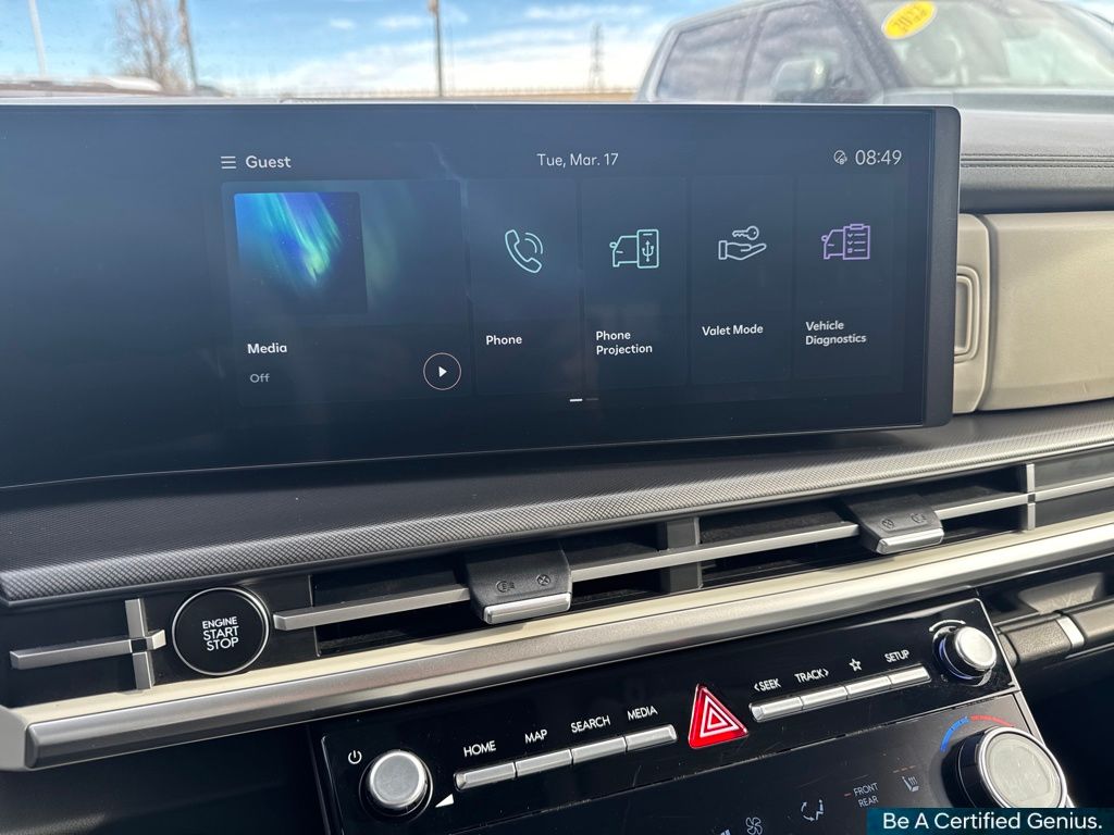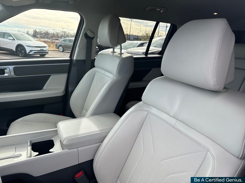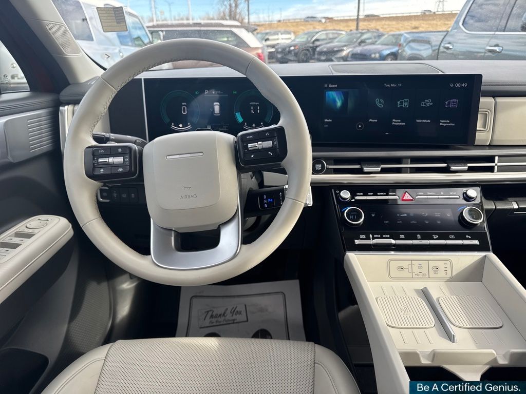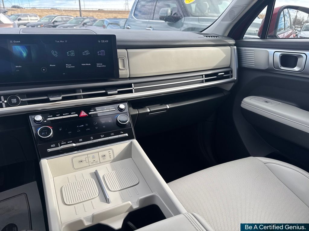 Option Group 01, Hyundai Certified Used Vehicles Certified, AWD, Gray Premium Synthetic, 18" x 7.5J Alloy Wheels, 3rd row seats: bench, 4-Wheel Disc Brakes, 6 Speakers, ABS brakes, Air Conditioning, Alloy wheels, AM/FM radio: SiriusXM, Apple CarPlay & Android Auto, Auto High-beam Headlights, Automatic temperature control, Axle Ratio: 3.316, Brake assist, Bumpers: body-color, Delay-off headlights, Driver door bin, Driver vanity mirror, Dual front impact airbags, Dual front side impact airbags, Electronic Stability Control, Emergency communication system, Exterior Parking Camera Rear, Four wheel independent suspension, Front anti-roll bar, Front Bucket Seats, Front Center Armrest, Front dual zone A/C, Front reading lights, Fully automatic headlights, H-Tex Leatherette Seat Trim, Heated door mirrors, Heated Front Bucket Seats, Heated front seats, Illuminated entry, Knee airbag, Leather steering wheel, Low tire pressure warning, Occupant sensing airbag, Outside temperature display, Overhead airbag, Overhead console, Panic alarm, Passenger door bin, Passenger vanity mirror, Power door mirrors, Power driver seat, Power Liftgate, Power steering, Power windows, Radio: AM/FM/HD Display Audio, Rear anti-roll bar, Rear seat center armrest, Rear side impact airbag, Rear window defroster, Rear window wiper, Remote keyless entry, Security system, Speed control, Speed-sensing steering, Split folding rear seat, Spoiler, Steering wheel mounted audio controls, Tachometer, Telescoping steering wheel, Tilt steering wheel, Traction control, Trip computer, Turn signal indicator mirrors, and Variably intermittent wipers.