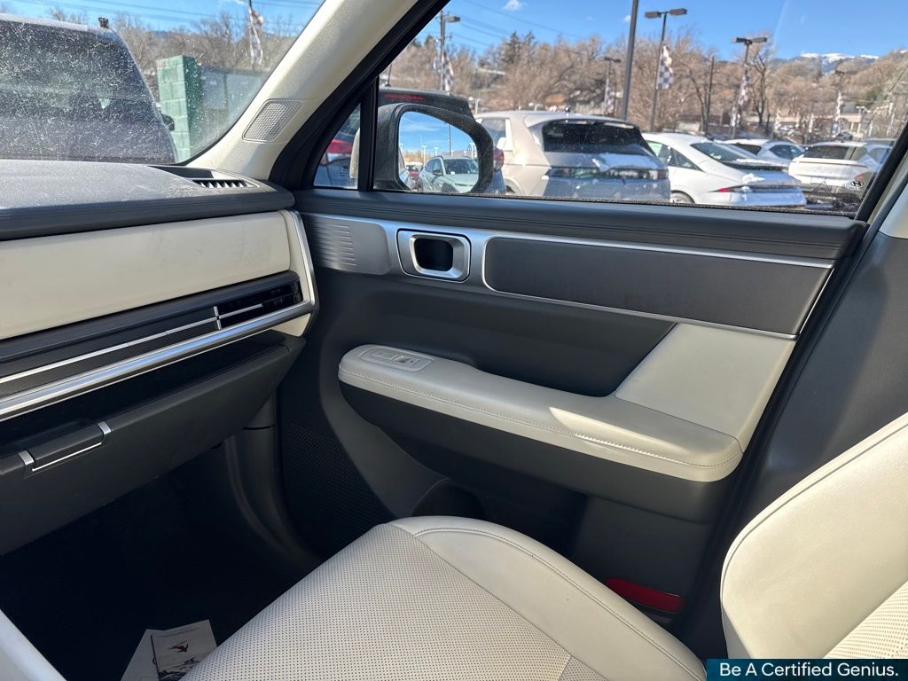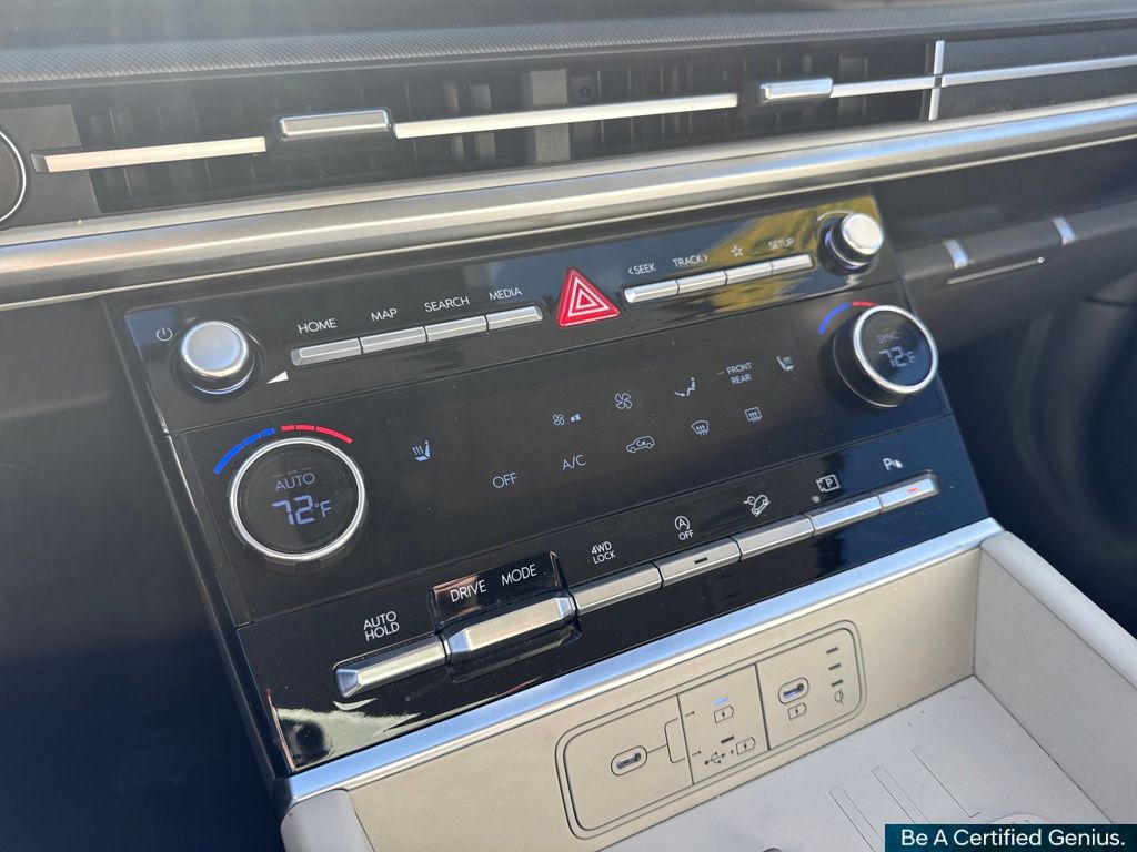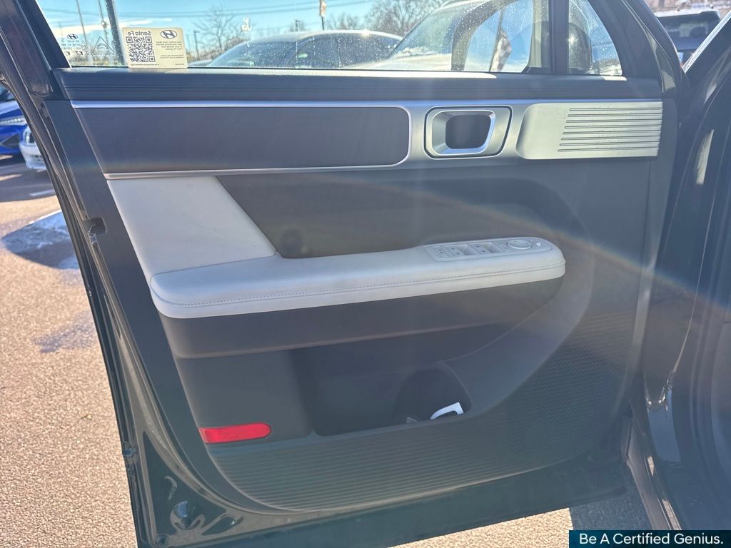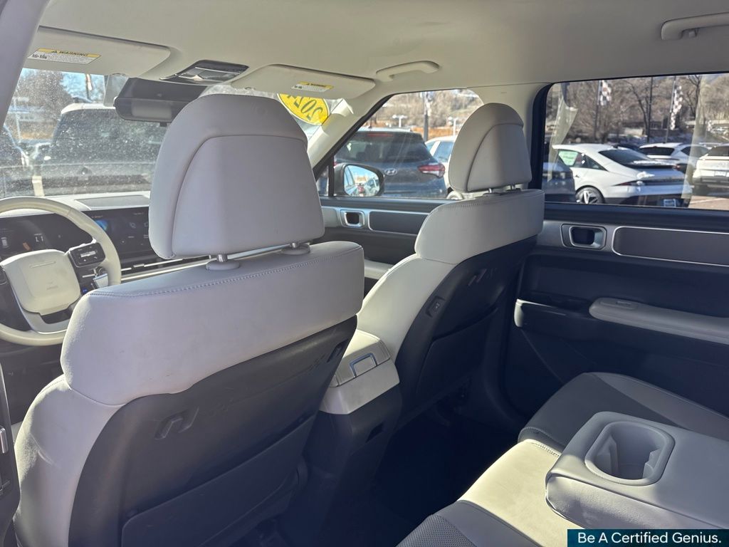 Option Group 01, Hyundai Certified Used Vehicles Certified, AWD, Gray Premium Synthetic, 18" x 7.5J Alloy Wheels, 3rd row seats: bench, 4-Wheel Disc Brakes, 6 Speakers, ABS brakes, Air Conditioning, Alloy wheels, AM/FM radio: SiriusXM, Apple CarPlay & Android Auto, Auto High-beam Headlights, Automatic temperature control, Axle Ratio: 3.316, Brake assist, Bumpers: body-color, Delay-off headlights, Driver door bin, Driver vanity mirror, Dual front impact airbags, Dual front side impact airbags, Electronic Stability Control, Emergency communication system, Exterior Parking Camera Rear, Four wheel independent suspension, Front anti-roll bar, Front Bucket Seats, Front Center Armrest, Front dual zone A/C, Front reading lights, Fully automatic headlights, H-Tex Leatherette Seat Trim, Heated door mirrors, Heated Front Bucket Seats, Heated front seats, Illuminated entry, Knee airbag, Leather steering wheel, Low tire pressure warning, Occupant sensing airbag, Outside temperature display, Overhead airbag, Overhead console, Panic alarm, Passenger door bin, Passenger vanity mirror, Power door mirrors, Power driver seat, Power Liftgate, Power steering, Power windows, Radio: AM/FM/HD Display Audio, Rear anti-roll bar, Rear seat center armrest, Rear side impact airbag, Rear window defroster, Rear window wiper, Remote keyless entry, Security system, Speed control, Speed-sensing steering, Split folding rear seat, Spoiler, Steering wheel mounted audio controls, Tachometer, Telescoping steering wheel, Tilt steering wheel, Traction control, Trip computer, Turn signal indicator mirrors, and Variably intermittent wipers.