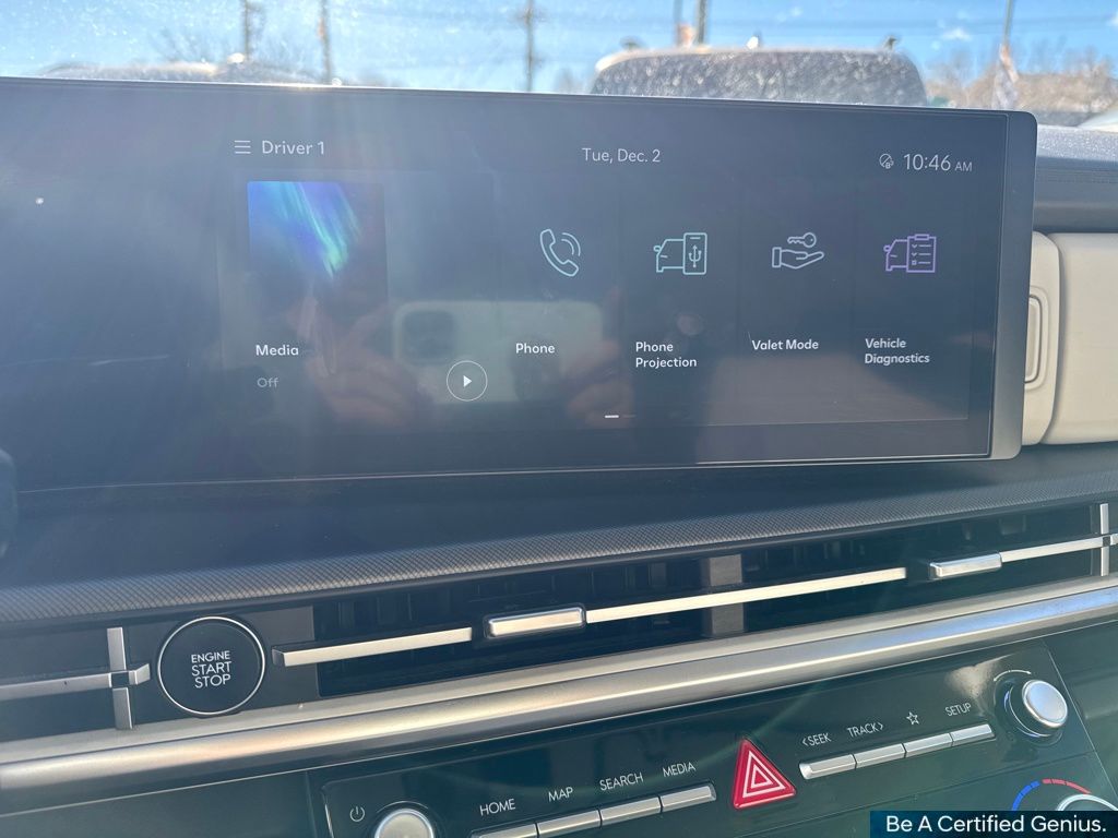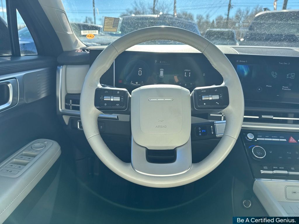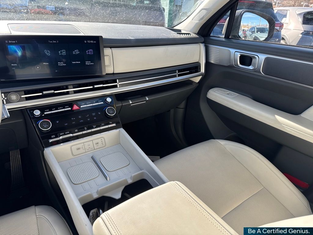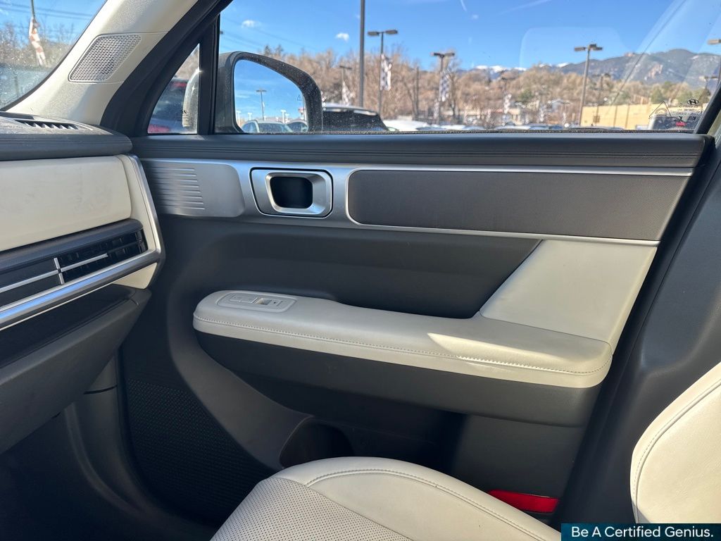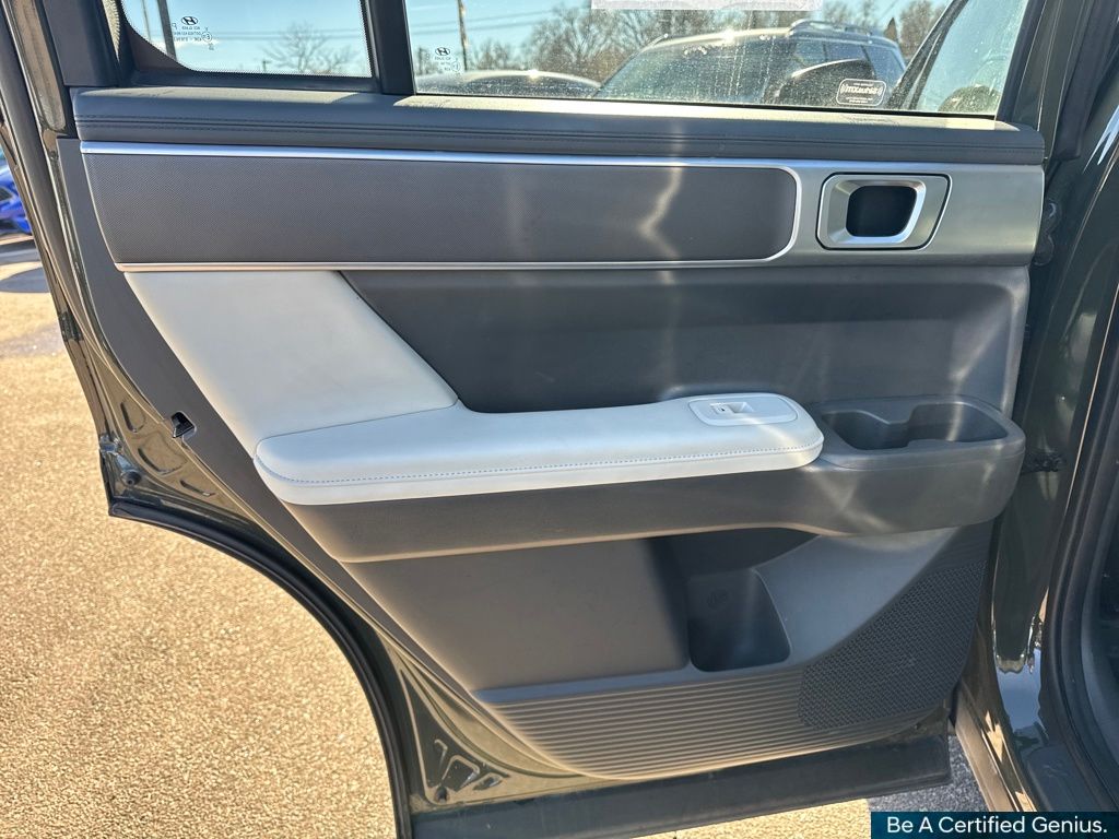 Option Group 01, Hyundai Certified Used Vehicles Certified, AWD, Gray Premium Synthetic, 18" x 7.5J Alloy Wheels, 3rd row seats: bench, 4-Wheel Disc Brakes, 6 Speakers, ABS brakes, Air Conditioning, Alloy wheels, AM/FM radio: SiriusXM, Apple CarPlay & Android Auto, Auto High-beam Headlights, Automatic temperature control, Axle Ratio: 3.316, Brake assist, Bumpers: body-color, Delay-off headlights, Driver door bin, Driver vanity mirror, Dual front impact airbags, Dual front side impact airbags, Electronic Stability Control, Emergency communication system, Exterior Parking Camera Rear, Four wheel independent suspension, Front anti-roll bar, Front Bucket Seats, Front Center Armrest, Front dual zone A/C, Front reading lights, Fully automatic headlights, H-Tex Leatherette Seat Trim, Heated door mirrors, Heated Front Bucket Seats, Heated front seats, Illuminated entry, Knee airbag, Leather steering wheel, Low tire pressure warning, Occupant sensing airbag, Outside temperature display, Overhead airbag, Overhead console, Panic alarm, Passenger door bin, Passenger vanity mirror, Power door mirrors, Power driver seat, Power Liftgate, Power steering, Power windows, Radio: AM/FM/HD Display Audio, Rear anti-roll bar, Rear seat center armrest, Rear side impact airbag, Rear window defroster, Rear window wiper, Remote keyless entry, Security system, Speed control, Speed-sensing steering, Split folding rear seat, Spoiler, Steering wheel mounted audio controls, Tachometer, Telescoping steering wheel, Tilt steering wheel, Traction control, Trip computer, Turn signal indicator mirrors, and Variably intermittent wipers.