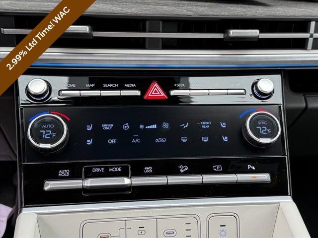 Option Group 01, Hyundai Certified Used Vehicles Certified, I4, 12 Speakers, 3rd row seats: bench, 4-Wheel Disc Brakes, ABS brakes, Air Conditioning, Alloy wheels, AM/FM radio: SiriusXM, Apple CarPlay & Android Auto, Auto High-beam Headlights, Auto-dimming Rear-View mirror, Automatic temperature control, Brake assist, Bumpers: body-color, Delay-off headlights, Driver door bin, Driver vanity mirror, Dual front impact airbags, Dual front side impact airbags, Electronic Stability Control, Emergency communication system, Exterior Parking Camera Rear, Four wheel independent suspension, Front anti-roll bar, Front Bucket Seats, Front Center Armrest, Front dual zone A/C, Front reading lights, Fully automatic headlights, Garage door transmitter: HomeLink, Heated & Ventilated Front Bucket Seats, Heated door mirrors, Heated front seats, Heated rear seats, Heated steering wheel, Illuminated entry, Knee airbag, Leather Seat Trim, Leather steering wheel, Low tire pressure warning, Memory seat, Navigation System, Occupant sensing airbag, Outside temperature display, Overhead airbag, Overhead console, Panic alarm, Passenger door bin, Passenger vanity mirror, Power door mirrors, Power driver seat, Power Liftgate, Power moonroof, Power passenger seat, Power steering, Power windows, Radio: AM/FM/HD Bose Premium Audio System, Rain sensing wipers, Rear anti-roll bar, Rear seat center armrest, Rear side impact airbag, Rear window defroster, Rear window wiper, Remote keyless entry, Security system, Speed control, Speed-sensing steering, Split folding rear seat, Spoiler, Steering wheel mounted audio controls, Tachometer, Telescoping steering wheel, Tilt steering wheel, Traction control, Trip computer, Turn signal indicator mirrors, Variably intermittent wipers, Ventilated front seats, and Wheels: 20" x 8.5J Alloy.