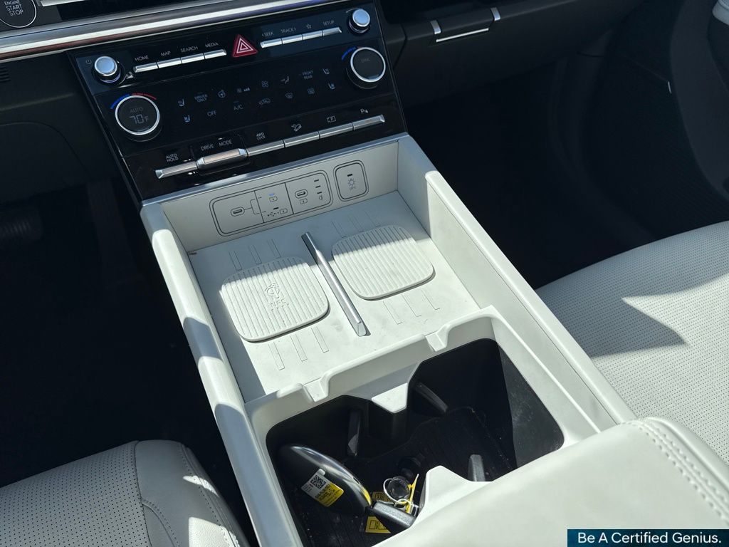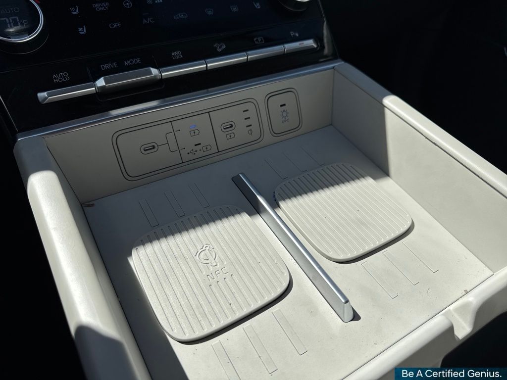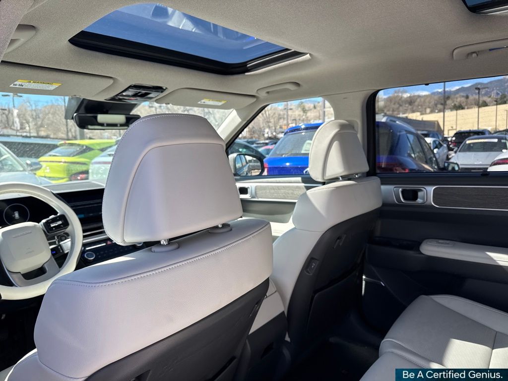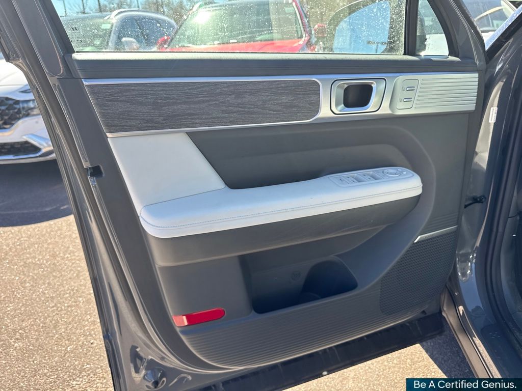 Option Group 01, Hyundai Certified Used Vehicles Certified, I4, 12 Speakers, 3rd row seats: bench, 4-Wheel Disc Brakes, ABS brakes, Air Conditioning, Alloy wheels, AM/FM radio: SiriusXM, Apple CarPlay & Android Auto, Auto High-beam Headlights, Auto-dimming Rear-View mirror, Automatic temperature control, Brake assist, Bumpers: body-color, Delay-off headlights, Driver door bin, Driver vanity mirror, Dual front impact airbags, Dual front side impact airbags, Electronic Stability Control, Emergency communication system, Exterior Parking Camera Rear, Four wheel independent suspension, Front anti-roll bar, Front Bucket Seats, Front Center Armrest, Front dual zone A/C, Front reading lights, Fully automatic headlights, Garage door transmitter: HomeLink, Heated & Ventilated Front Bucket Seats, Heated door mirrors, Heated front seats, Heated rear seats, Heated steering wheel, Illuminated entry, Knee airbag, Leather Seat Trim, Leather steering wheel, Low tire pressure warning, Memory seat, Navigation System, Occupant sensing airbag, Outside temperature display, Overhead airbag, Overhead console, Panic alarm, Passenger door bin, Passenger vanity mirror, Power door mirrors, Power driver seat, Power Liftgate, Power moonroof, Power passenger seat, Power steering, Power windows, Radio: AM/FM/HD Bose Premium Audio System, Rain sensing wipers, Rear anti-roll bar, Rear seat center armrest, Rear side impact airbag, Rear window defroster, Rear window wiper, Remote keyless entry, Security system, Speed control, Speed-sensing steering, Split folding rear seat, Spoiler, Steering wheel mounted audio controls, Tachometer, Telescoping steering wheel, Tilt steering wheel, Traction control, Trip computer, Turn signal indicator mirrors, Variably intermittent wipers, Ventilated front seats, and Wheels: 20" x 8.5J Alloy.
