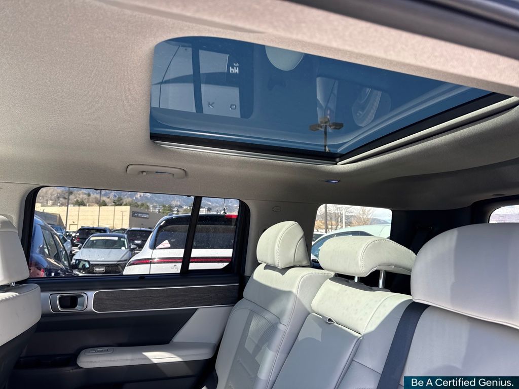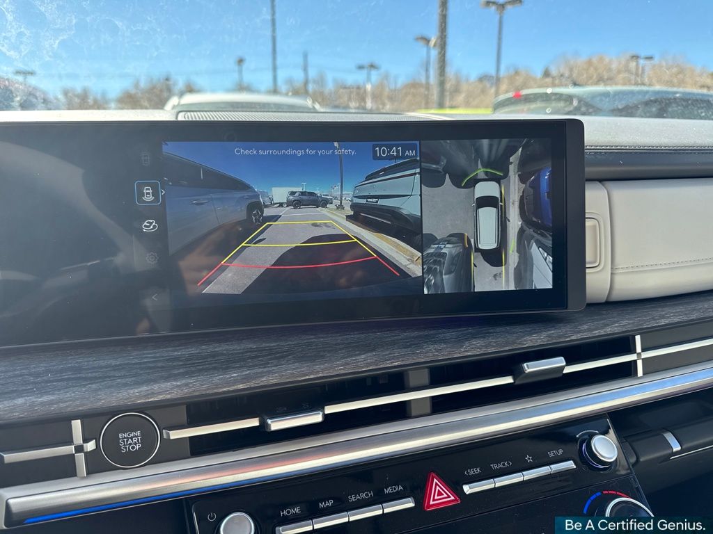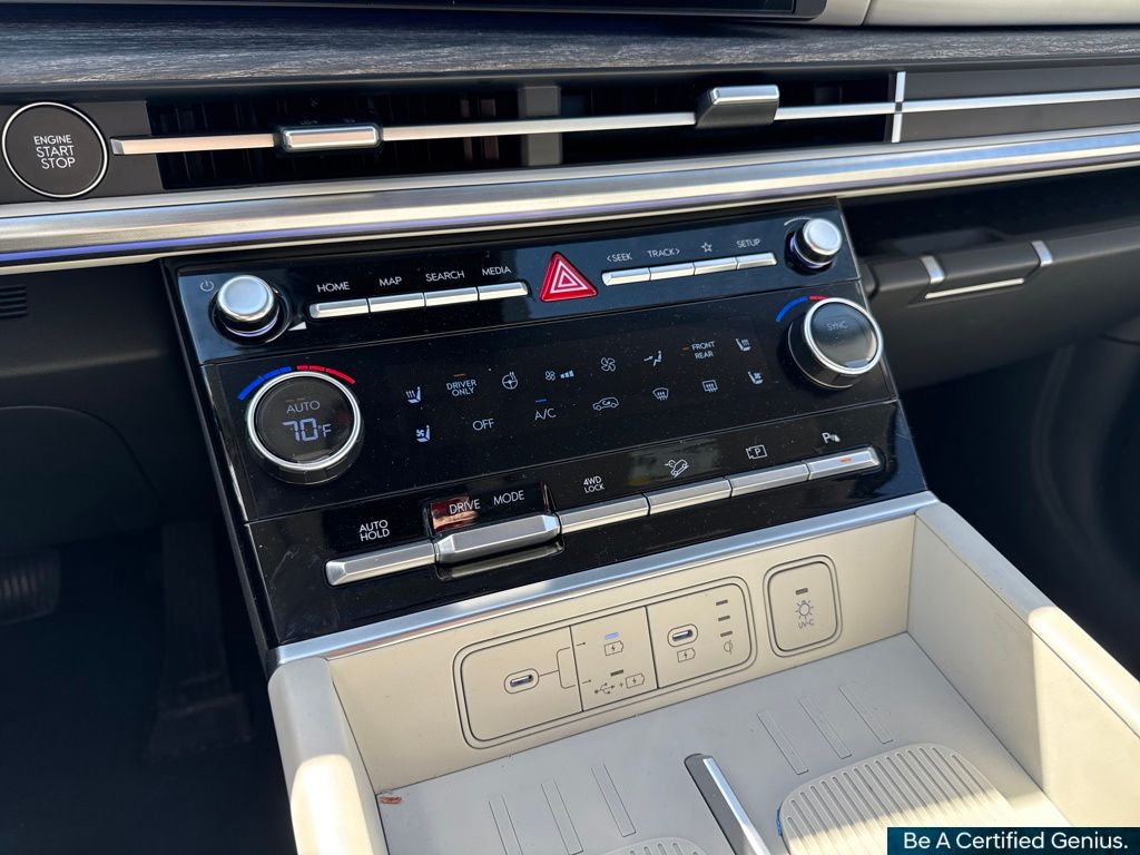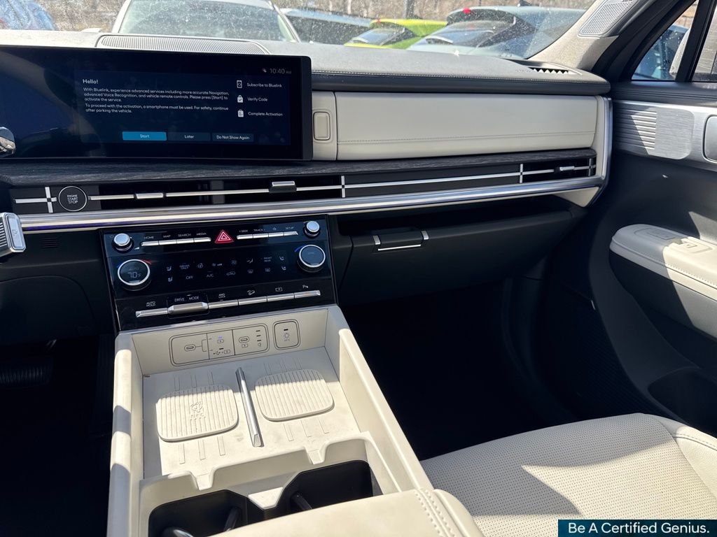 Option Group 01, Hyundai Certified Used Vehicles Certified, I4, 12 Speakers, 3rd row seats: bench, 4-Wheel Disc Brakes, ABS brakes, Air Conditioning, Alloy wheels, AM/FM radio: SiriusXM, Apple CarPlay & Android Auto, Auto High-beam Headlights, Auto-dimming Rear-View mirror, Automatic temperature control, Brake assist, Bumpers: body-color, Delay-off headlights, Driver door bin, Driver vanity mirror, Dual front impact airbags, Dual front side impact airbags, Electronic Stability Control, Emergency communication system, Exterior Parking Camera Rear, Four wheel independent suspension, Front anti-roll bar, Front Bucket Seats, Front Center Armrest, Front dual zone A/C, Front reading lights, Fully automatic headlights, Garage door transmitter: HomeLink, Heated & Ventilated Front Bucket Seats, Heated door mirrors, Heated front seats, Heated rear seats, Heated steering wheel, Illuminated entry, Knee airbag, Leather Seat Trim, Leather steering wheel, Low tire pressure warning, Memory seat, Navigation System, Occupant sensing airbag, Outside temperature display, Overhead airbag, Overhead console, Panic alarm, Passenger door bin, Passenger vanity mirror, Power door mirrors, Power driver seat, Power Liftgate, Power moonroof, Power passenger seat, Power steering, Power windows, Radio: AM/FM/HD Bose Premium Audio System, Rain sensing wipers, Rear anti-roll bar, Rear seat center armrest, Rear side impact airbag, Rear window defroster, Rear window wiper, Remote keyless entry, Security system, Speed control, Speed-sensing steering, Split folding rear seat, Spoiler, Steering wheel mounted audio controls, Tachometer, Telescoping steering wheel, Tilt steering wheel, Traction control, Trip computer, Turn signal indicator mirrors, Variably intermittent wipers, Ventilated front seats, and Wheels: 20" x 8.5J Alloy.