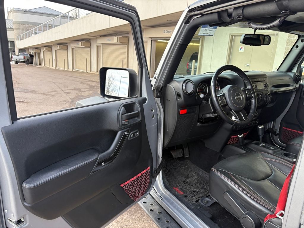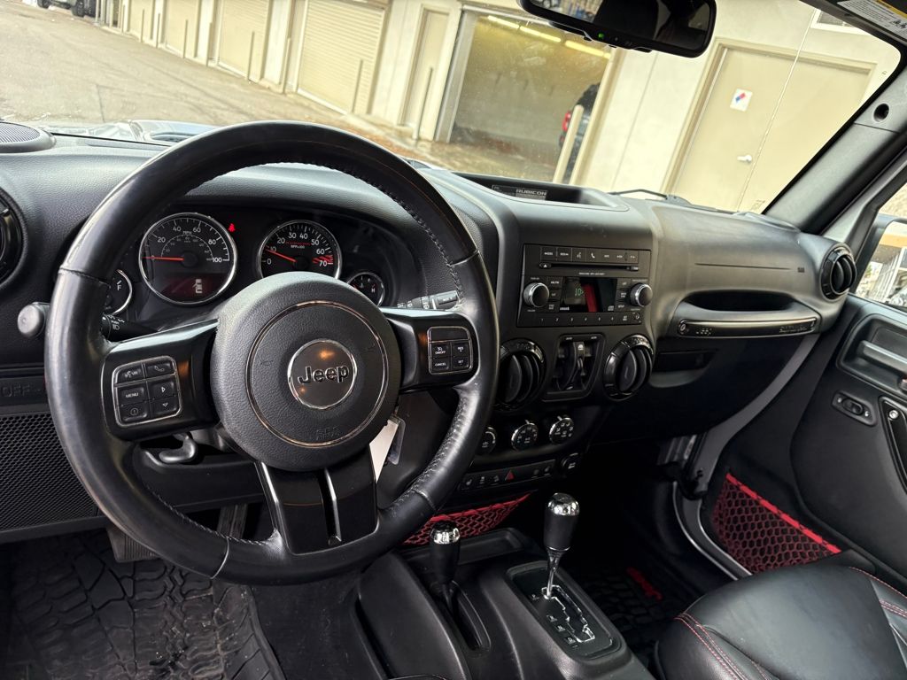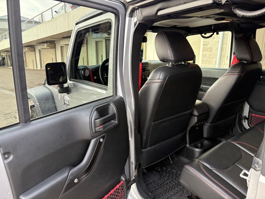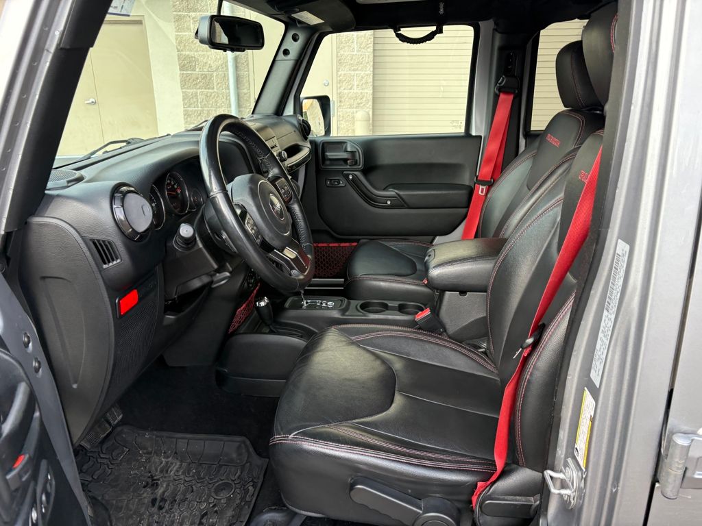 The Jeep Wrangler JK Unlimited Rubicon Recon comes with durable leather seat upholstery, giving the cabin a sophisticated feel while being easy to maintain. With the **Dana 44 rigid axle rear suspension**, this vehicle is designed to handle off-road challenges effortlessly.