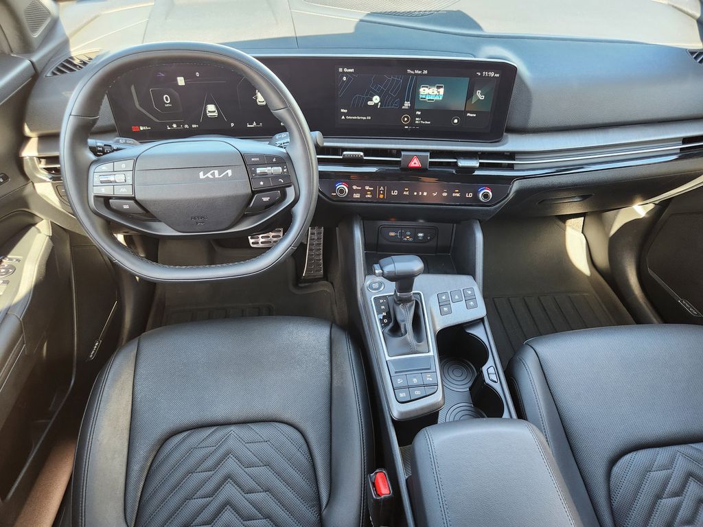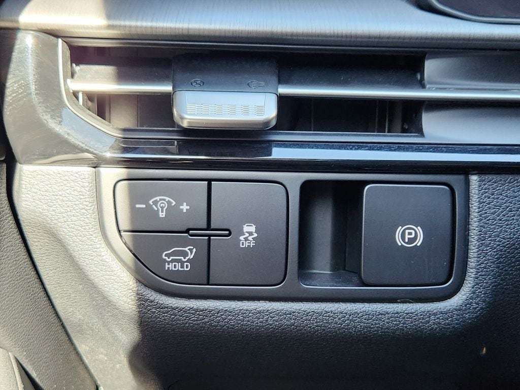 AWD, 4-Wheel Disc Brakes, 8 Speakers, ABS brakes, Air Conditioning, Alloy wheels, AM/FM radio: SiriusXM, Auto High-beam Headlights, Automatic temperature control, Brake assist, Bumpers: body-color, Compass, Delay-off headlights, Driver door bin, Driver vanity mirror, Dual front impact airbags, Dual front side impact airbags, Electronic Stability Control, Emergency communication system: Kia Connect (includes 1 year free trial), Four wheel independent suspension, Front anti-roll bar, Front Bucket Seats, Front Center Armrest, Front dual zone A/C, Front fog lights, Front reading lights, Fully automatic headlights, harman/kardon® Speakers, Heated and Ventilated Front Bucket Seats, Heated door mirrors, Heated front seats, Heated steering wheel, Illuminated entry, Leather Shift Knob, Leather steering wheel, Low tire pressure warning, Memory seat, Navigation System, Occupant sensing airbag, Outside temperature display, Overhead airbag, Overhead console, Panic alarm, Passenger door bin, Passenger vanity mirror, Power door mirrors, Power driver seat, Power Liftgate, Power moonroof, Power passenger seat, Power steering, Power windows, Radio: AM/FM/HD Premium Audio System, Rain sensing wipers, Rear anti-roll bar, Rear reading lights, Rear seat center armrest, Rear side impact airbag, Rear window defroster, Rear window wiper, Remote keyless entry, Security system, Speed control, Speed-sensing steering, Split folding rear seat, Spoiler, Steering wheel mounted audio controls, Syntex Premium Leatherette Seat Trim, Tachometer, Telescoping steering wheel, Tilt steering wheel, Traction control, Trip computer, Turn signal indicator mirrors, Variably intermittent wipers, Ventilated front seats, and Wheels: 17" x 7.0J Satin Black Alloy.