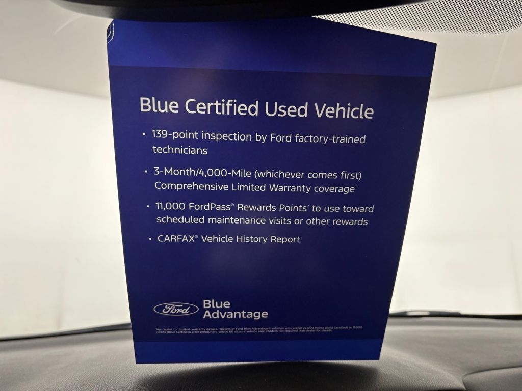 Ford Blue Certified includes:139 point vehicle inspection performed by an ASE Certified technician 3-month/4,000-mile Comprehensive Limited Warranty coverage that is fully competitive with other online retailers Blue Certification includes 11,000 FordPass Rewards Points For other manufacturers not listed above, Comprehensive Coverage is provided for 3 months or 4,000 miles, whichever comes first, from the signature date of the Ford Blue Advantage â" Blue Certified purch