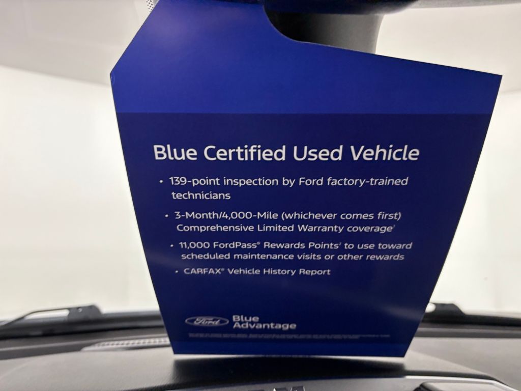 Ford Blue Certified includes:139 point vehicle inspection performed by an ASE Certified technician 3-month/4,000-mile Comprehensive Limited Warranty coverage that is fully competitive with other online retailers Blue Certification includes 11,000 FordPass Rewards Points For other manufacturers not listed above, Comprehensive Coverage is provided for 3 months or 4,000 miles, whichever comes first, from the signature date of the Ford Blue Advantage â" Blue Certified purchase. Comprehensive Limited Warranty covering 1,000+ components Travel expense reimbursement Rental