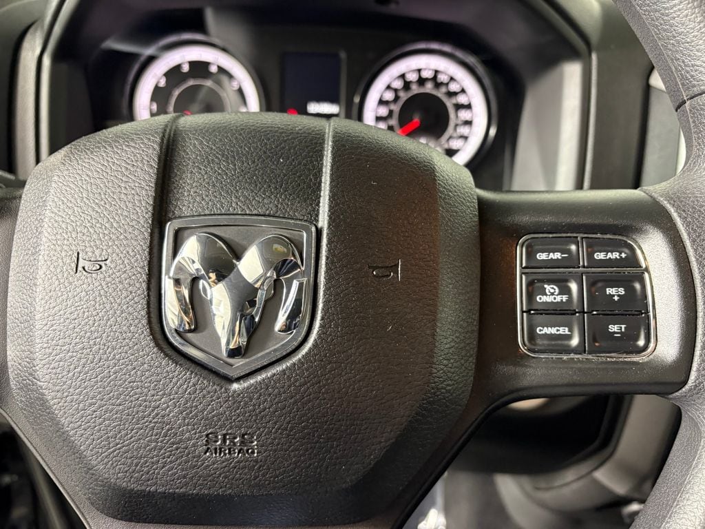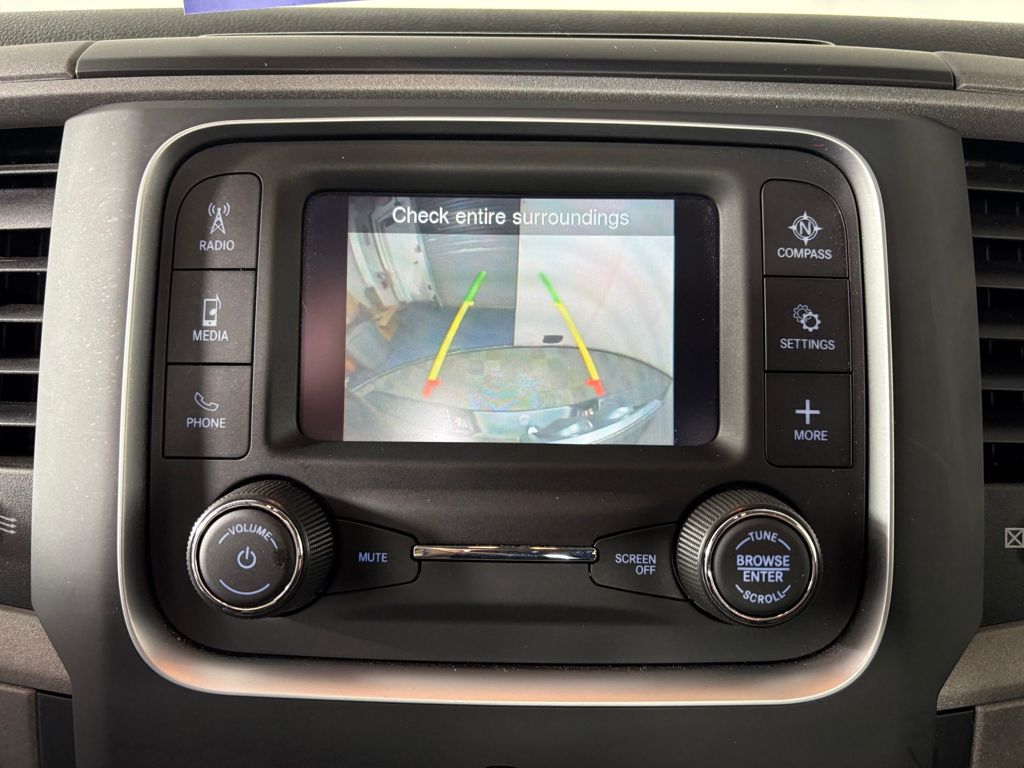 Practicality is a key element of the Ram 1500 Classic, highlighted by the **Keyfob Cargo Access Control**. This feature allows you to access the cargo area without setting down your items, making loading and unloading a breeze. Safety is also addressed with the **Rear camera**, which provides a clear view of obstacles behind you, enhancing your awareness while reversing.