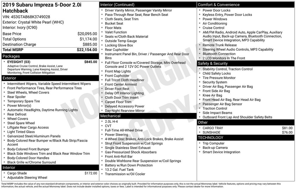 Packed with features and truly a pleasure to drive! With fewer than 50,000 miles on the odometer, this could be the right fit! Subaru infused the interior with top shelf amenities, such as: a tachometer, telescoping steering wheel, and air conditioning. Under the hood you'll find a 4 cylinder engine with more than 150 horsepower, and for added security, dynamic Stability Control supplements the drivetrain. All wheel drive provides for safe passage, regardless of road or weather conditions.