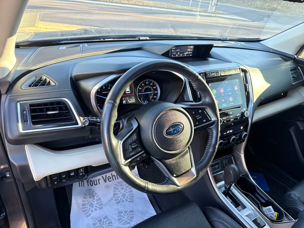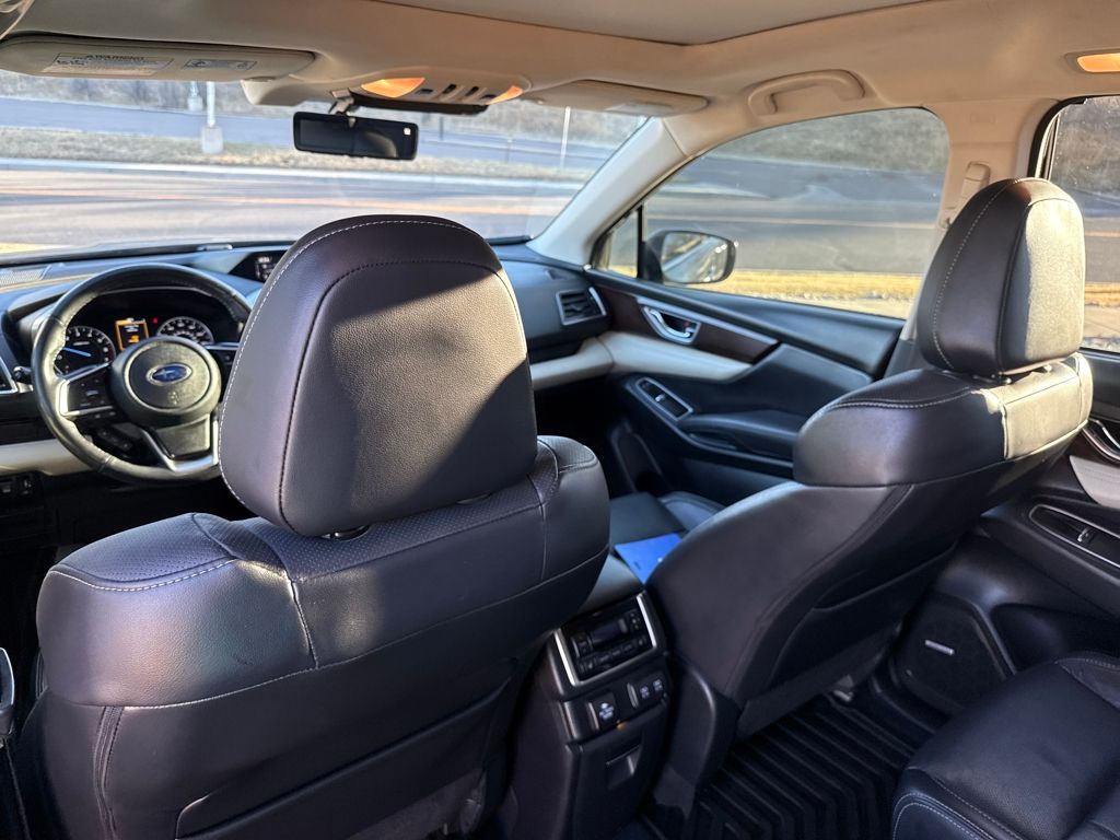 Standard Model w/Slate Black Interior, Subaru Certified, 14 Speakers, 3rd row seats: bench, 3rd Row Sunshade, 4-Wheel Disc Brakes, ABS brakes, Aero Crossbar Set, Air Conditioning, All-Weather Floor Liners, Alloy wheels, AM/FM radio: SiriusXM, Auto High-beam Headlights, Auto-Dimming Exterior Mirror w/Approach Light, Auto-dimming Rear-View mirror, Automatic temperature control, Axle Ratio: 4.44, Brake assist, Bumpers: body-color, Cargo Net, Cargo Tray, CD player, Compass, Cup Holder Insert, Delay-off headlights, Driver door bin, Driver vanity mirror, Dual front impact airbags, Dual front side impact airbags, Electronic Stability Control, Emergency communication system: STARLINK Safety and Security (Subscription Required), Exterior Parking Camera Rear, Four wheel independent suspension, Front anti-roll bar, Front Bucket Seats, Front Center Armrest, Front dual zone A/C, Front fog lights, Front reading lights, Fully automatic headlights, Garage door transmitter: HomeLink, harman/kardon® Speakers, Heated & Ventilated Front Bucket Seats, Heated door mirrors, Heated front seats, Heated rear seats, Heated steering wheel, Illuminated entry, Knee airbag, Low tire pressure warning, Memory seat, Navigation System, Occupant sensing airbag, Outside temperature display, Overhead airbag, Overhead console, Panic alarm, Passenger door bin, Passenger vanity mirror, Perforated Leather-Trimmed Upholstery, Power door mirrors, Power driver seat, Power Liftgate, Power moonroof, Power passenger seat, Power steering, Power windows, Radio data system, Radio: Subaru STARLINK 8.0" Multimedia Nav System, Rain sensing wipers, Rear air conditioning, Rear anti-roll bar, Rear Bumper Cover, Rear reading lights, Rear window defroster, Rear window wiper, Reclining 3rd row seat, Remote keyless entry, Security system, Speed control, Split folding rear seat, Spoiler, STARLINK/Apple CarPlay/Android Auto, Steering wheel mounted audio controls, Tachometer, Telescoping steering wheel, Tilt steering wheel, Traction control, Trip computer, Turn signal indicator mirrors, Variably intermittent wipers, Ventilated front seats, Wheels: 20" x 7.5 J Dk Gray Alloy w/Machine Finish, and Windshield Sunshade.