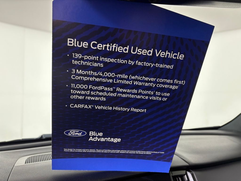 139 point vehicle inspection performed by an ASE Certified technician 3-month/4,000-mile Comprehensive Limited Warranty coverage that is fully competitive with other online retailers Blue Certification includes 11,000 FordPass Rewards Points For other manufacturers not listed above, Comprehensive Coverage is provided for 3 months or 4,000 miles, whichever comes first, from the signature date of the Ford Blue Advantage â" Blue Certified purchase. Comprehensive Limited Warranty covering 1,000+ components Travel expense reimbursement Rental car reimbursement SiriusXM 3 month tria. Recent Arrival! Odometer is 19906 miles below market average! 22/26 City/Highway MPG
