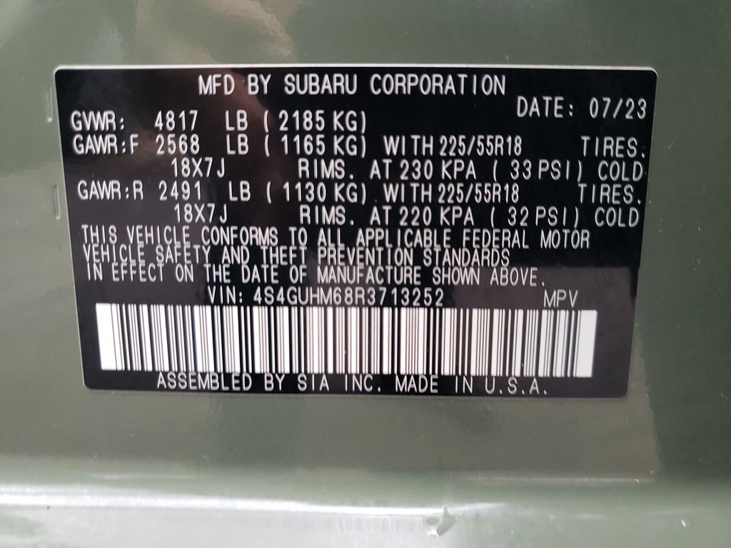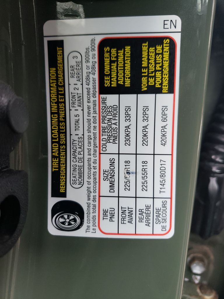 - Front tires: 225/55VR18.0