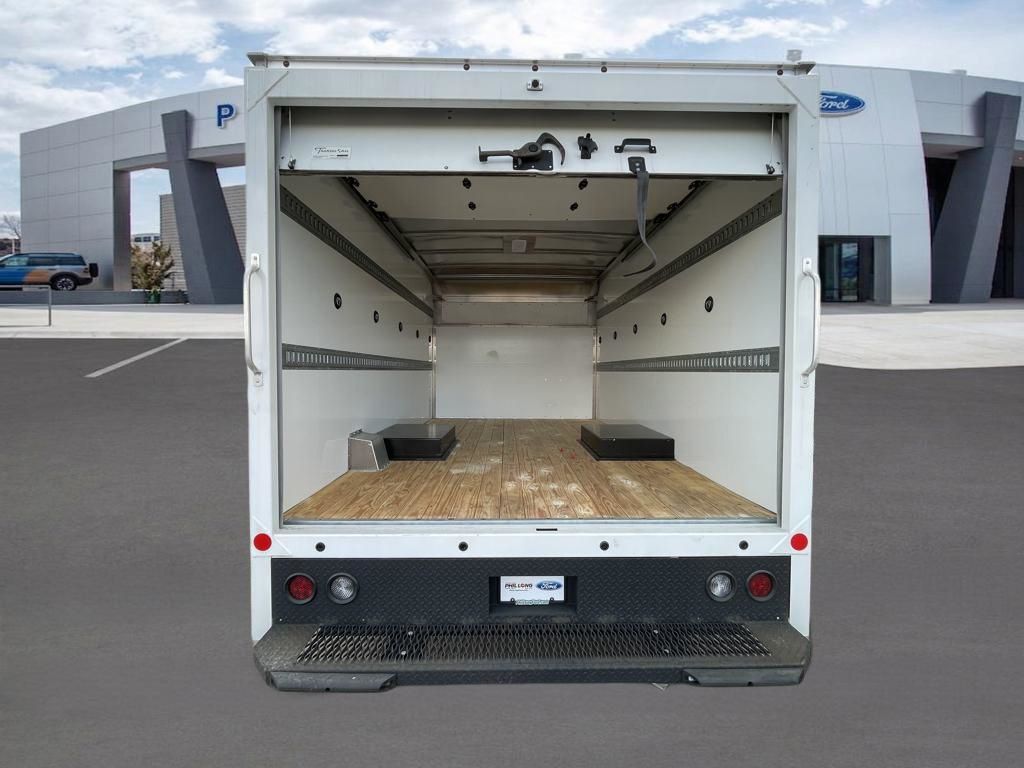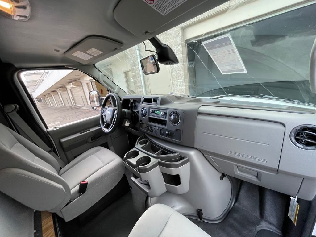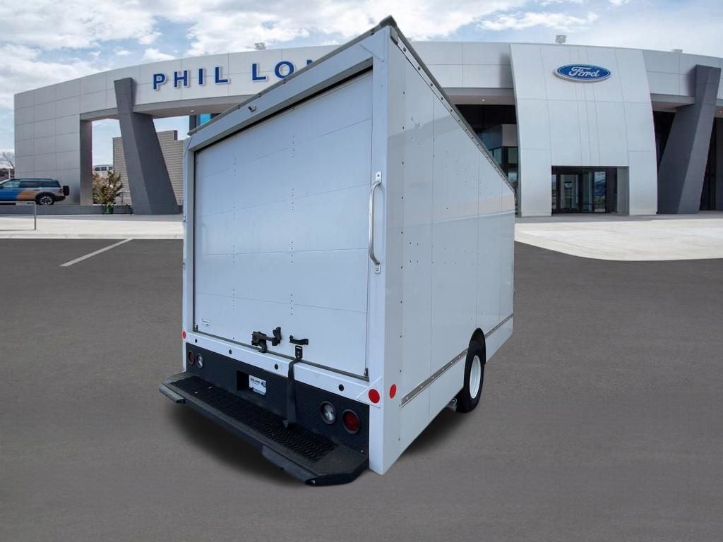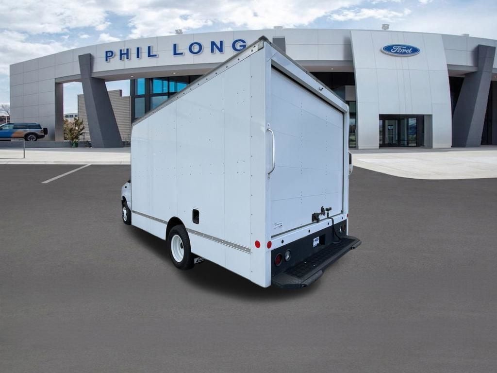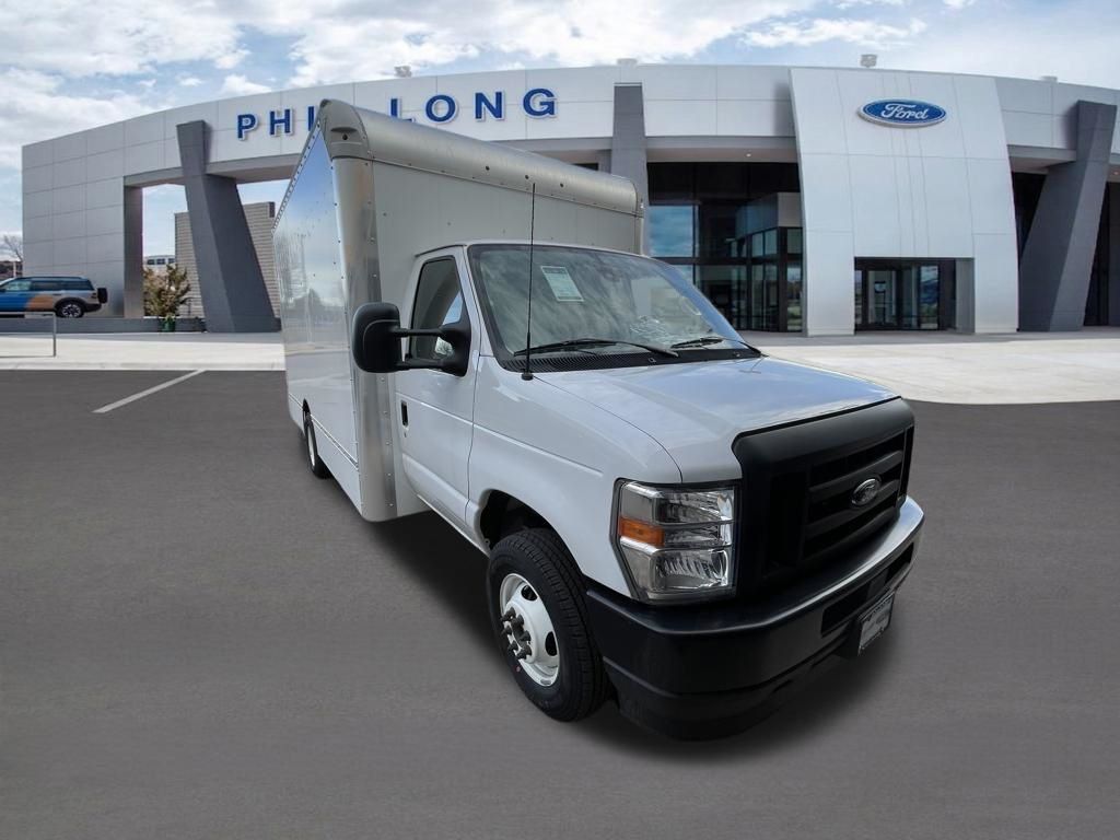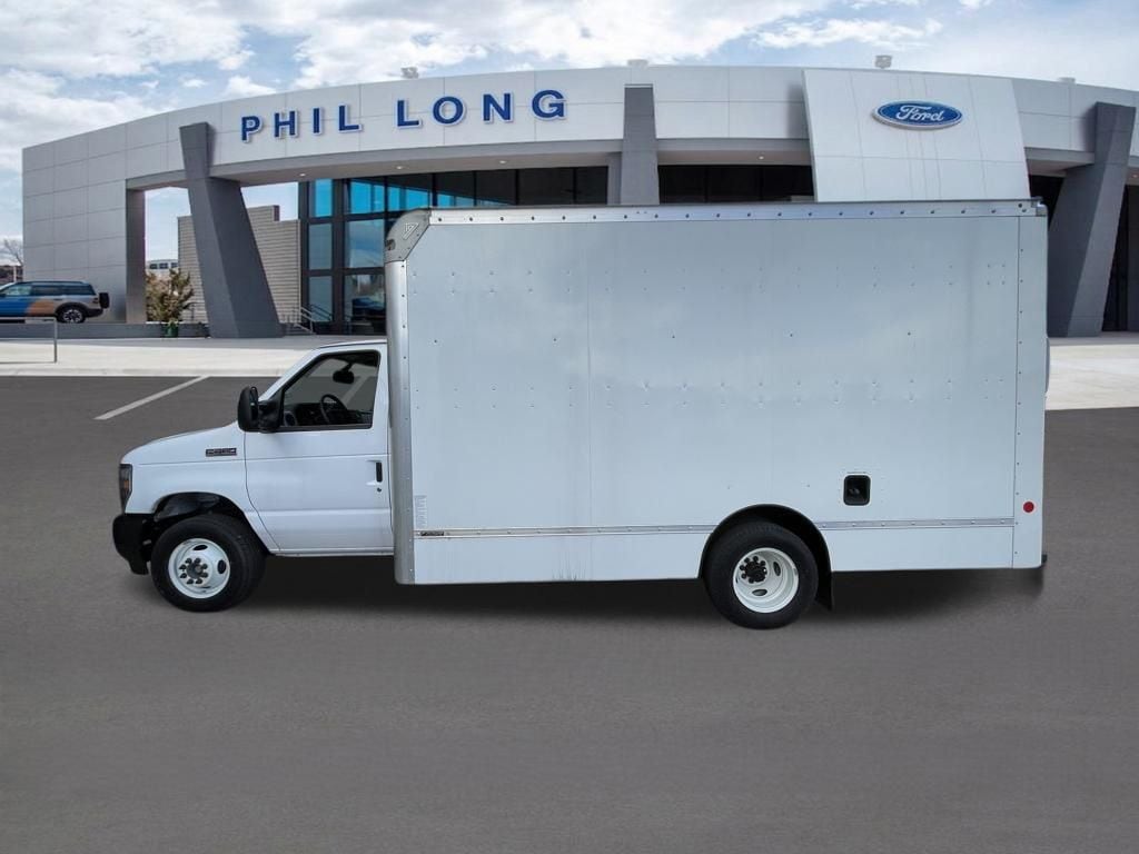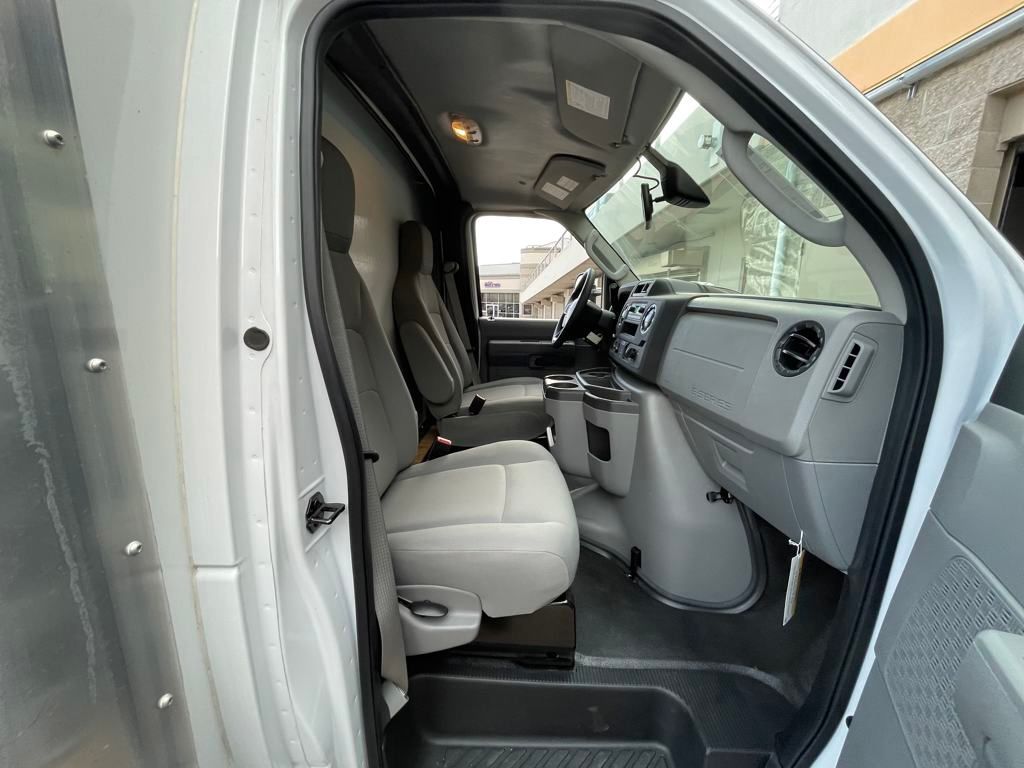 Oxford White 2024 Ford E-450SD DRW 14' Box Truck RWD 6-Speed Automatic with Overdrive 7.3L V8 7.3L V8, 6-Speed Automatic with Overdrive, RWD, Oxford White, Medium Flint w/Cloth Bucket Seats.